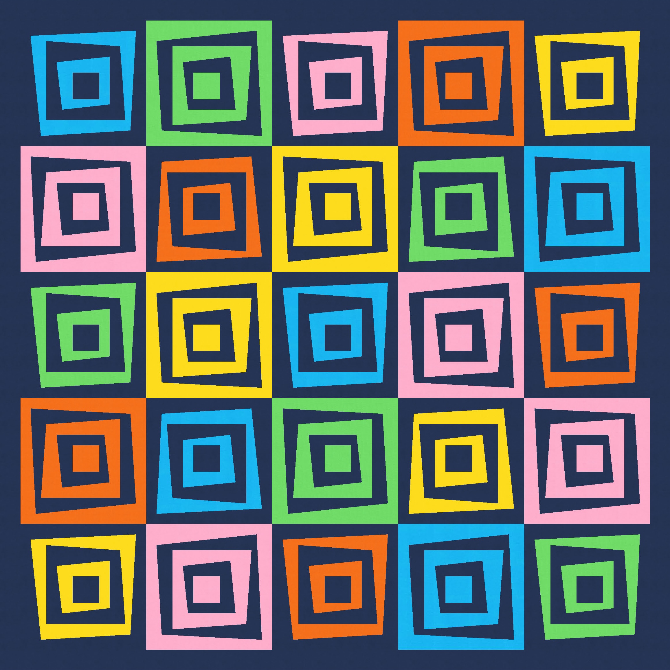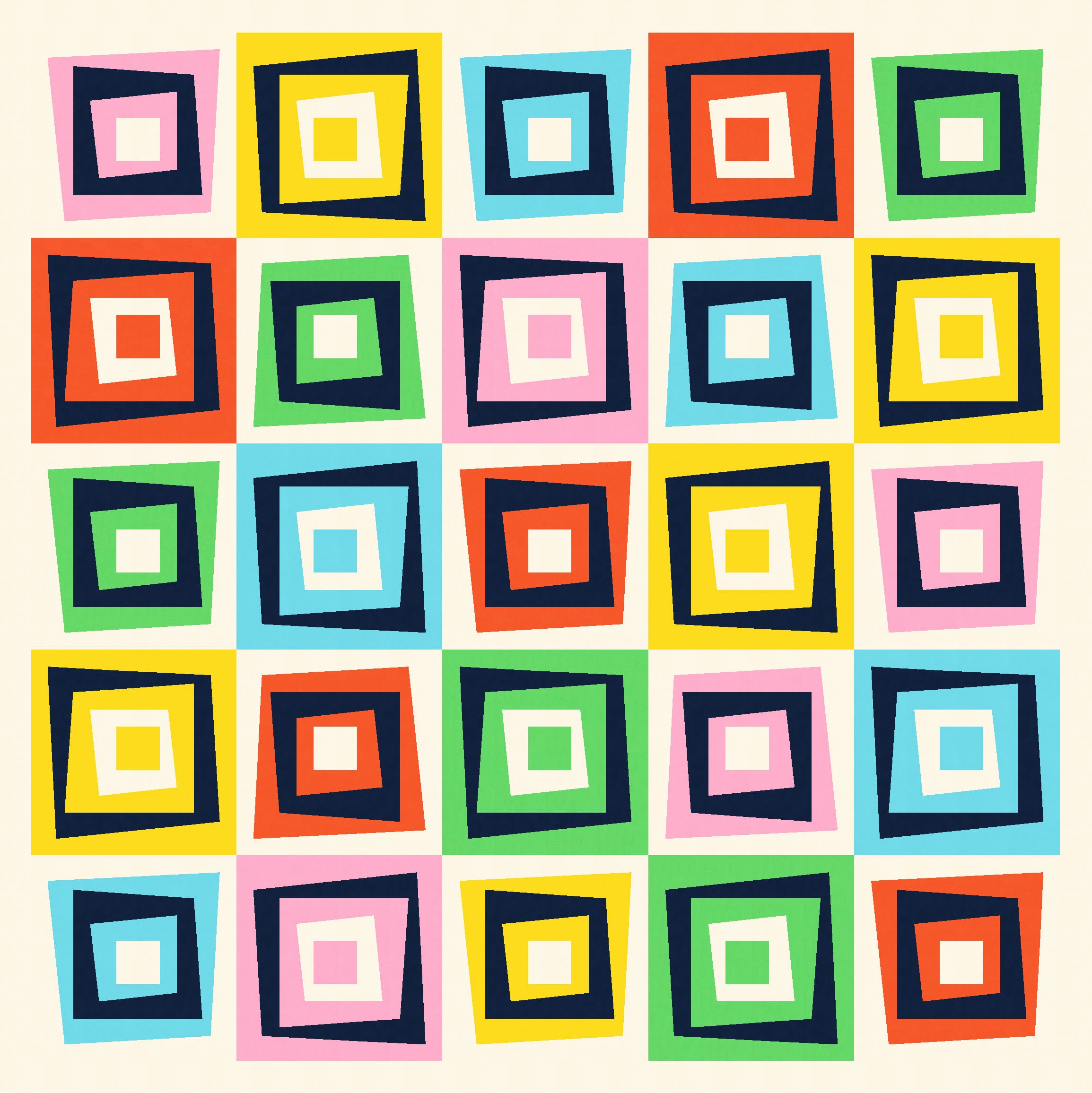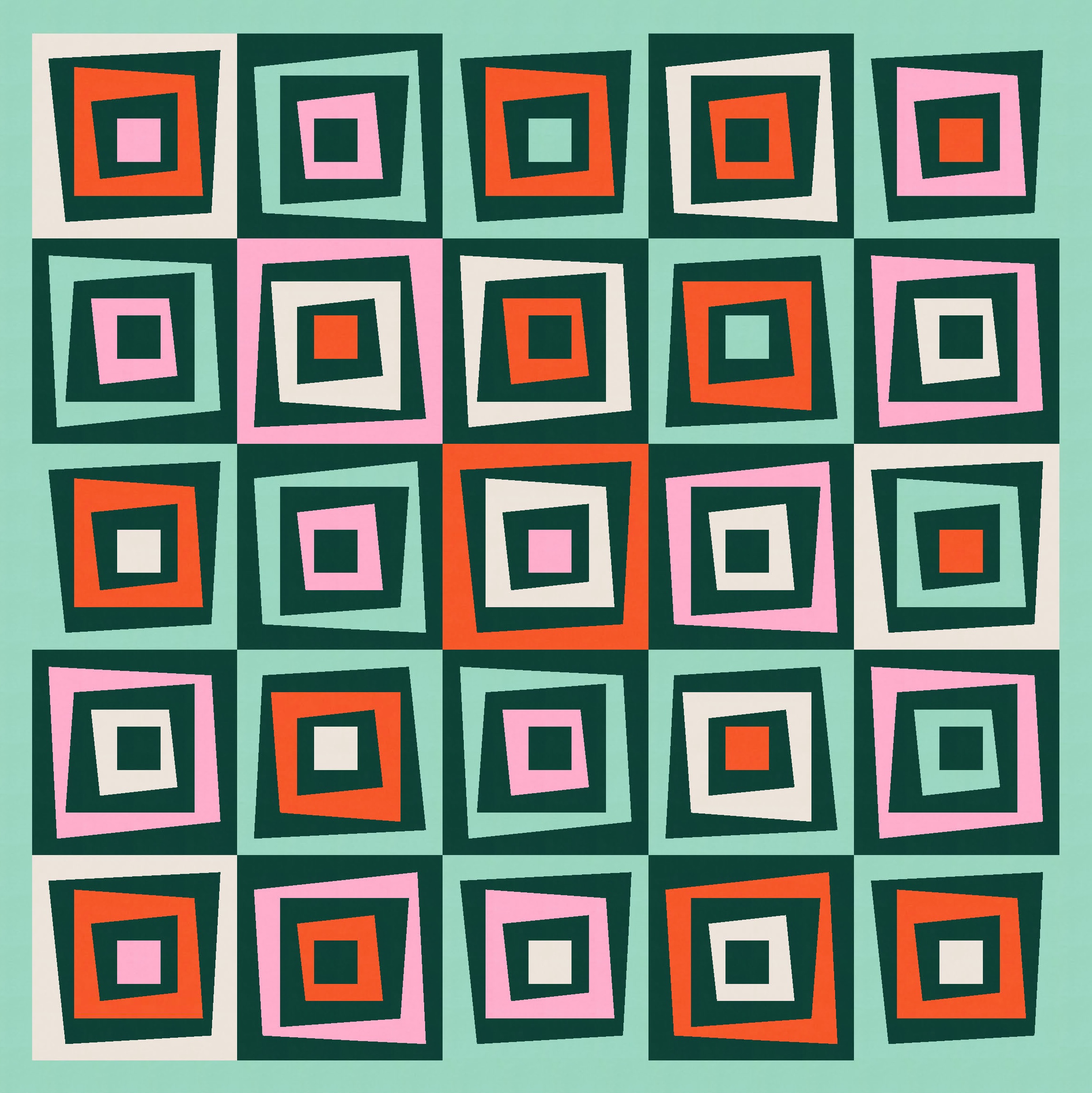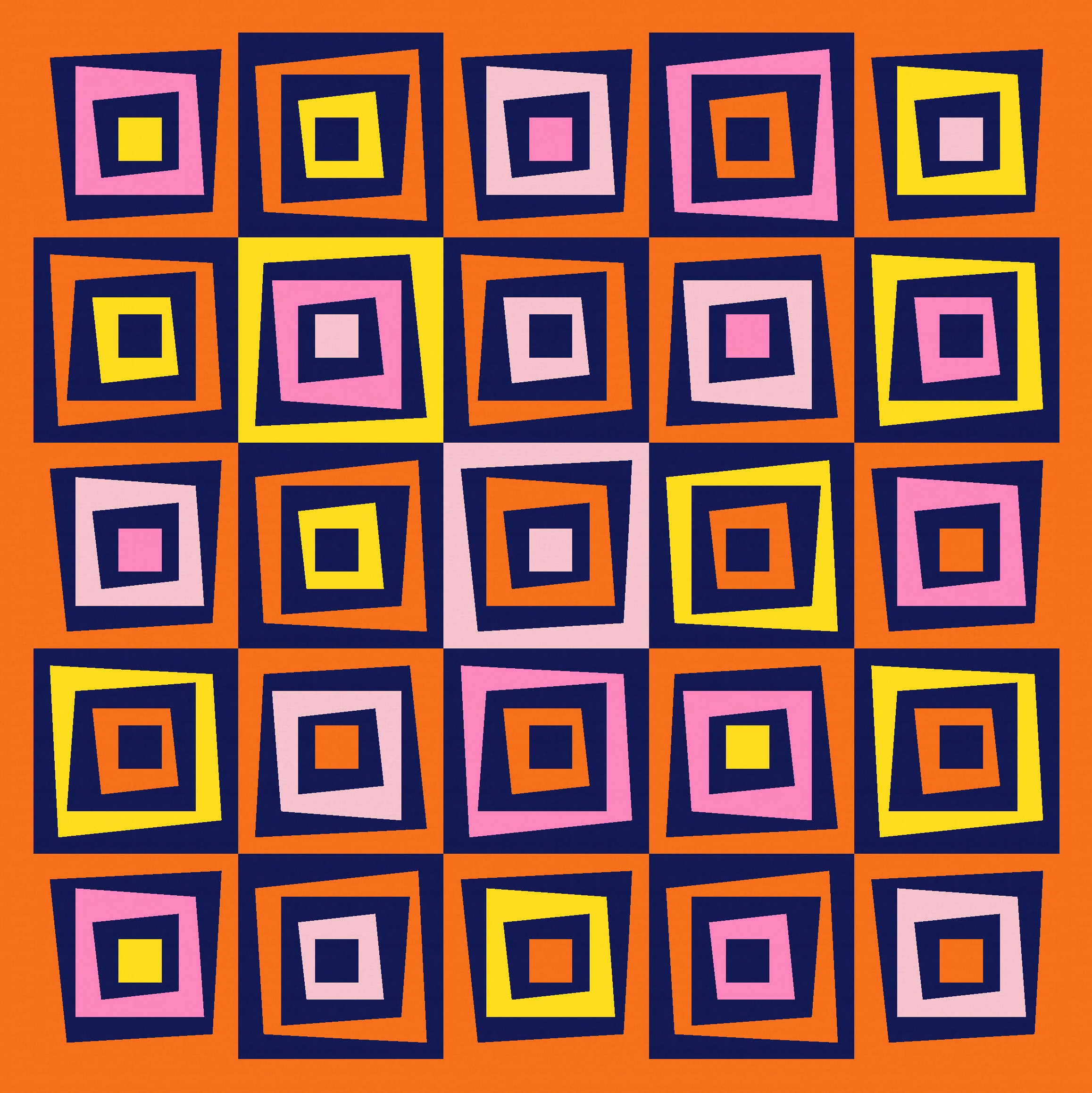 I love this design in just two colours, because the restricted palette really highlights the wonkiness of the design, at the same time as revealing the repetition and regularity. You can see that every second block is the same; you might also be able to tell that all the blocks are the same, but half are just rotated and colour-reversed.