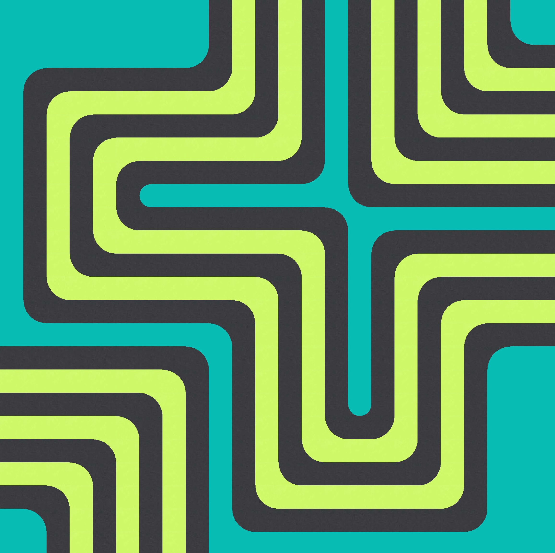 I started out with a fairly standard layout of curved corners meeting in the (mostly) middle. Then played around with the location of the meeting point (in the centre, off-centre…) and the colour palette.