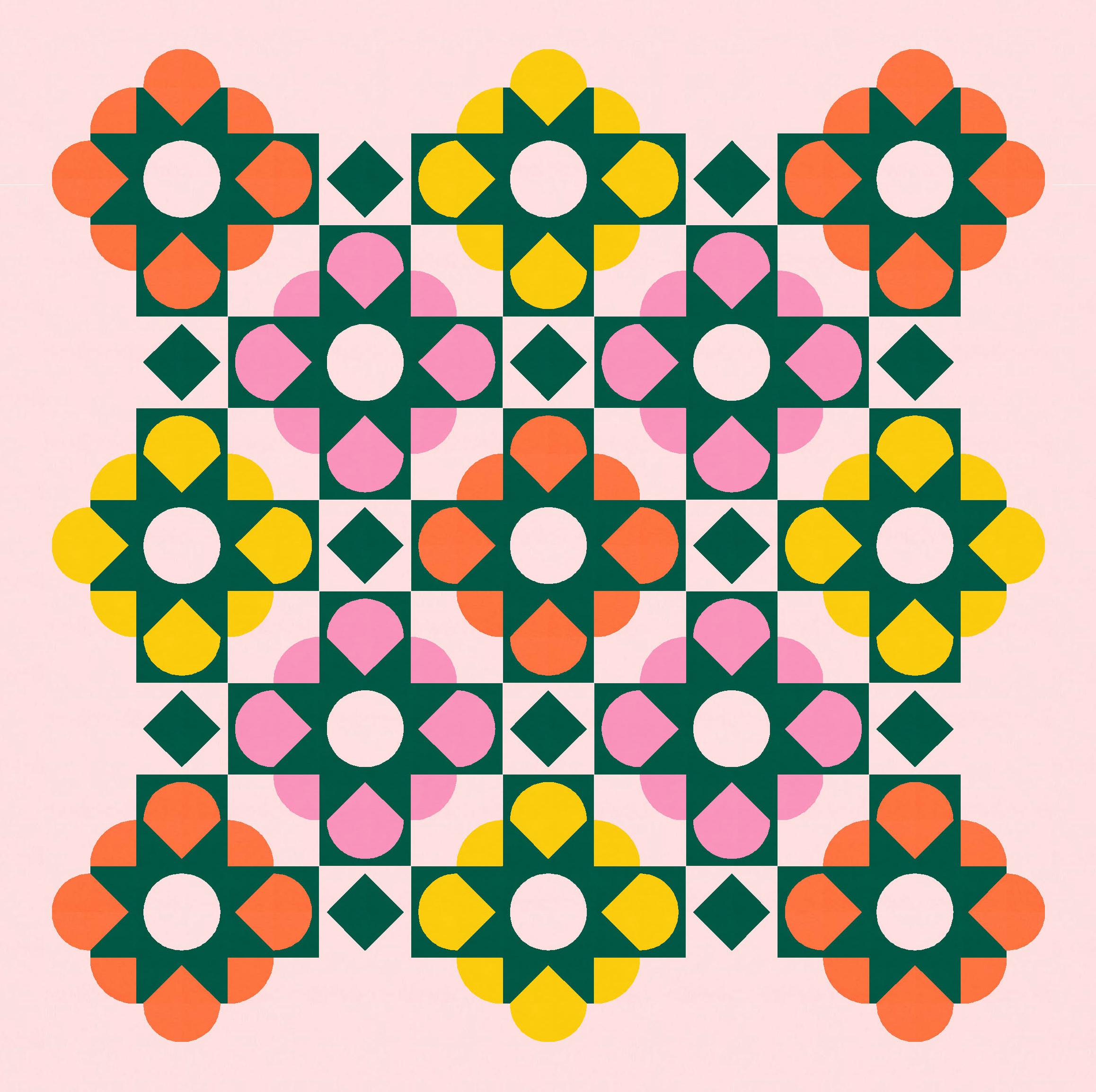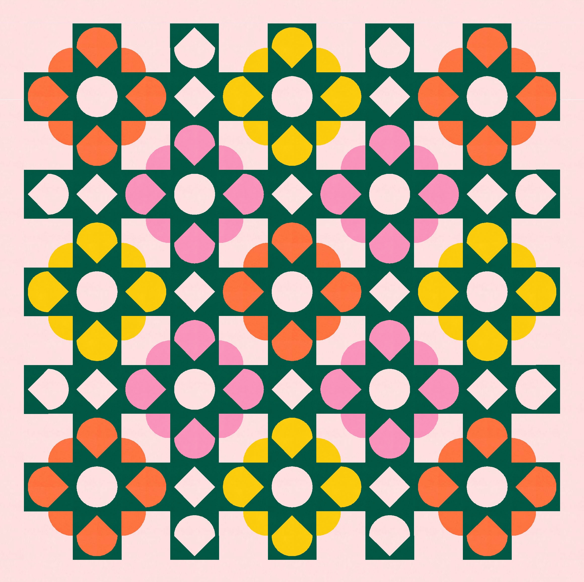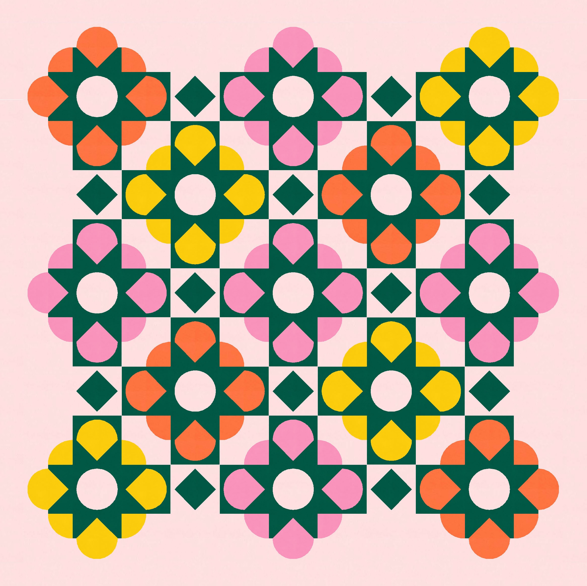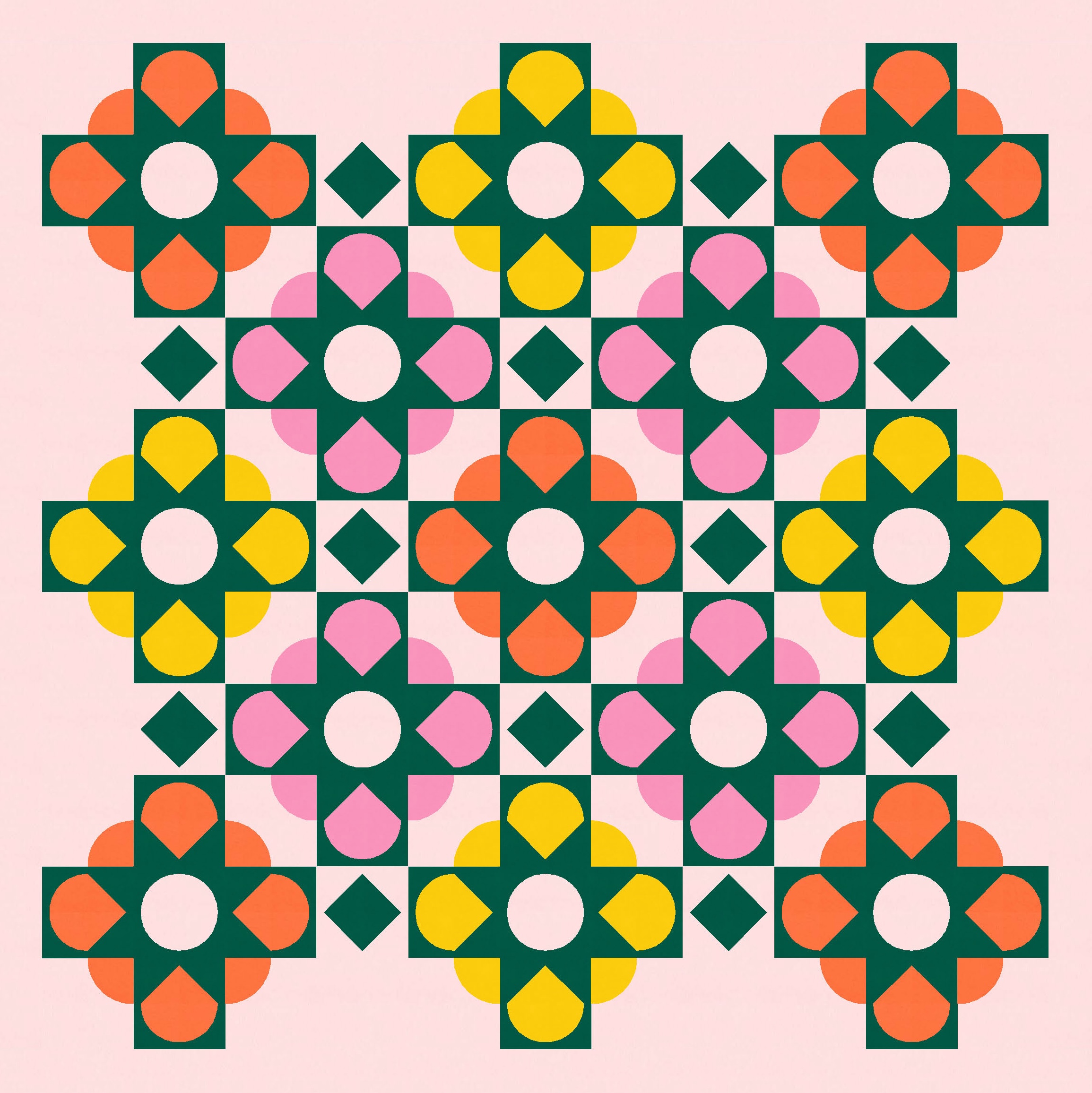 And since I wanted the big curvy shapes to look like flowers, I recoloured them in a larger palette of warm flowery tones. To maintain the floral theme, I’ve used a dark green for the overlaid shapes.