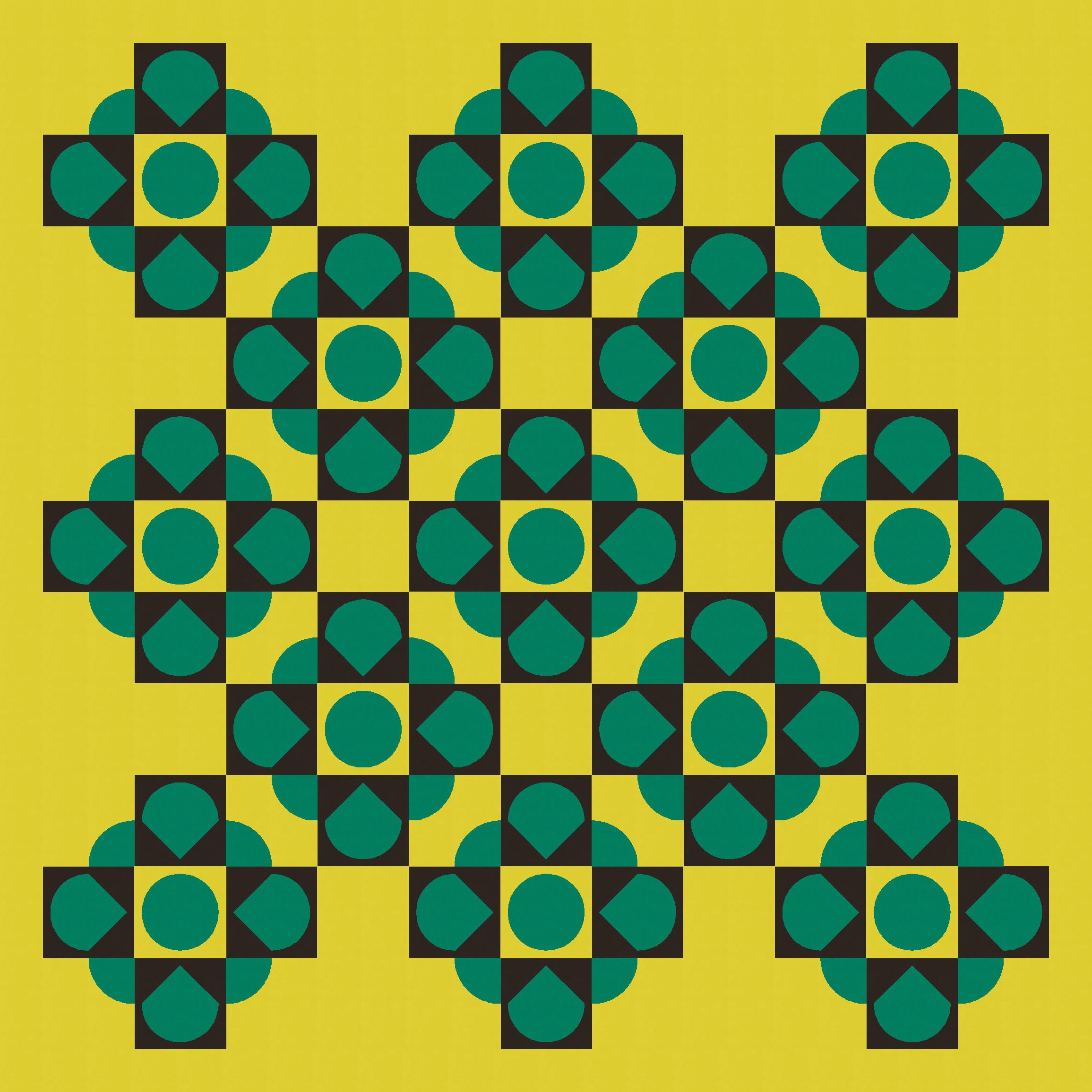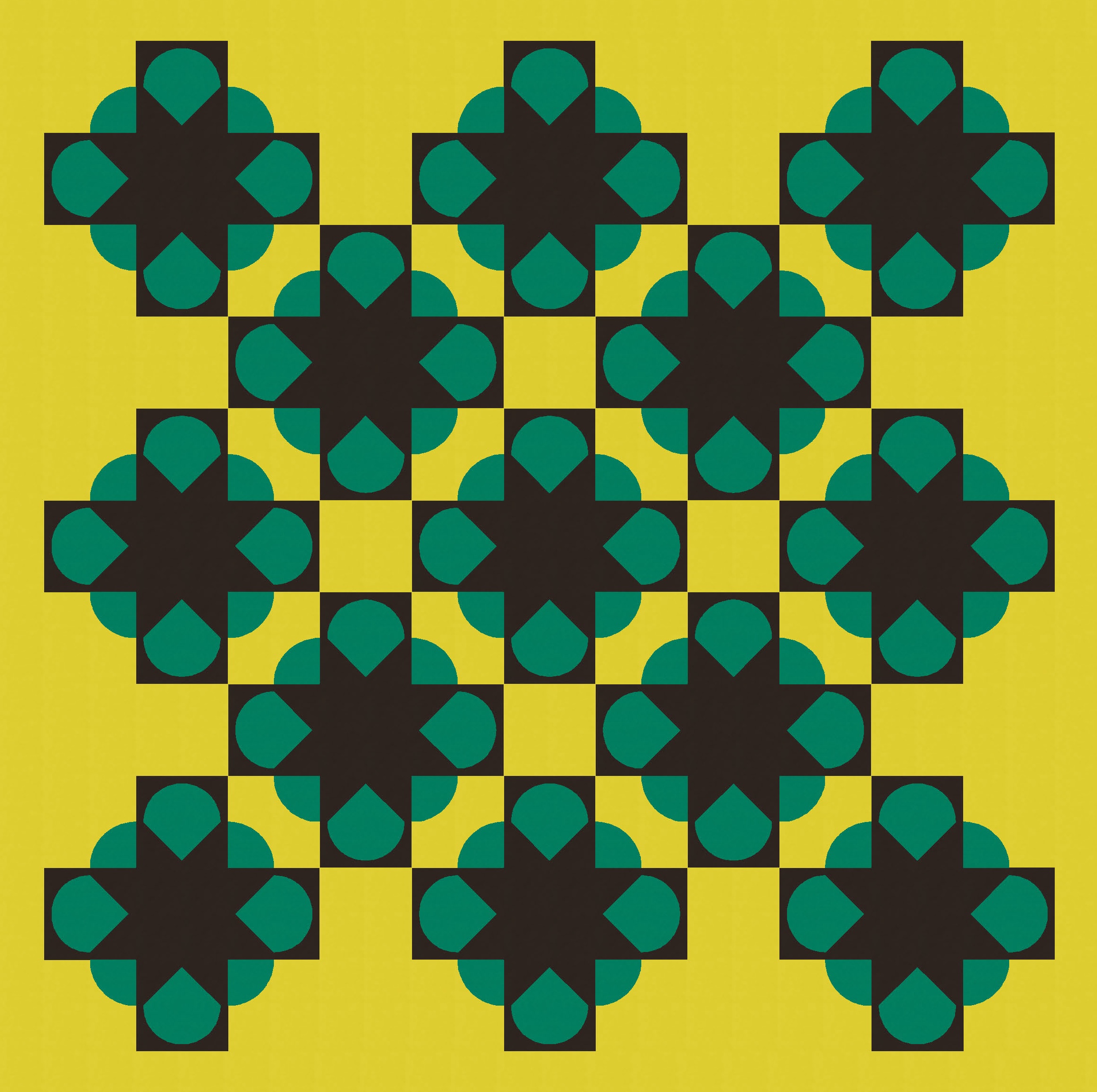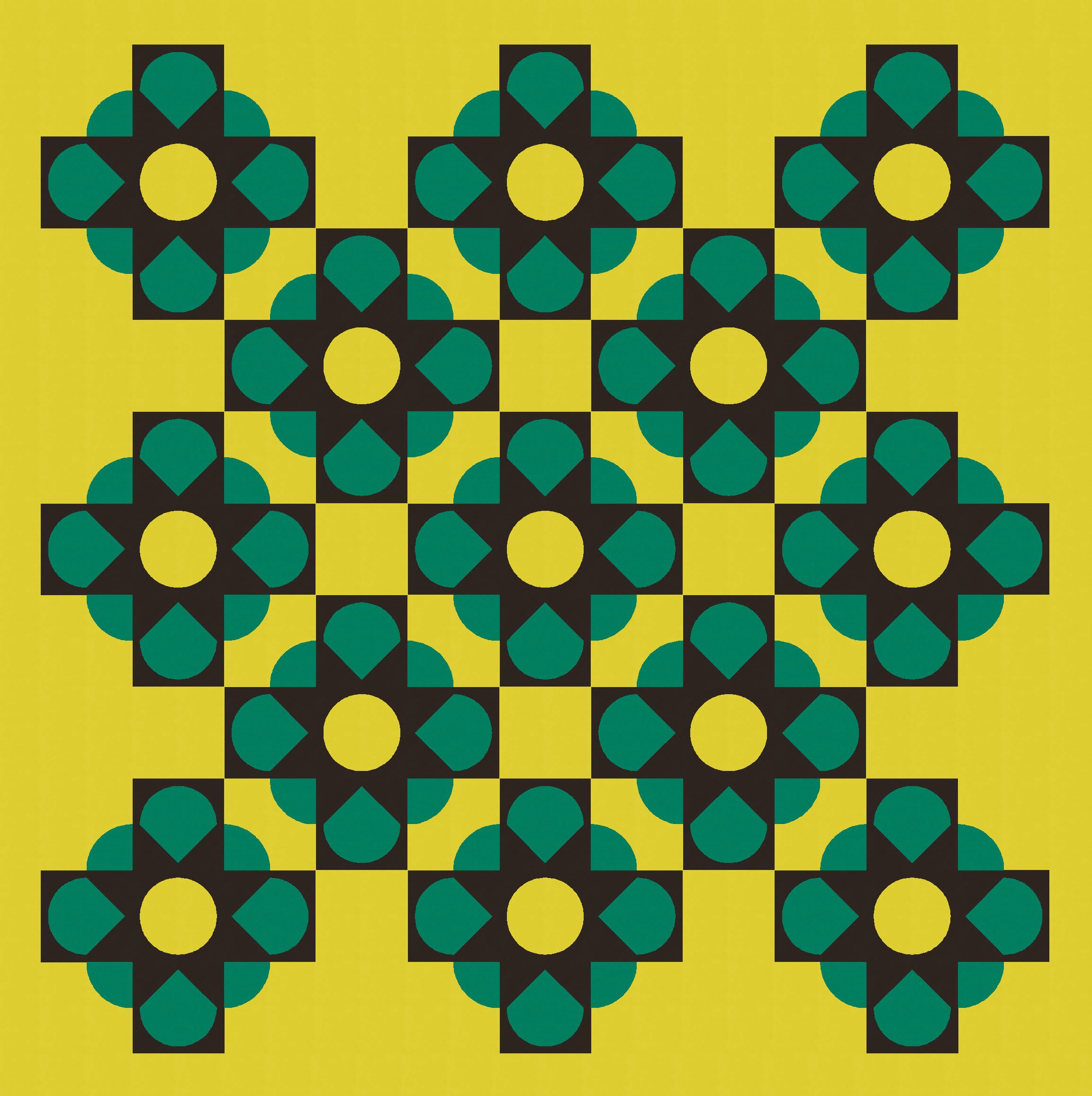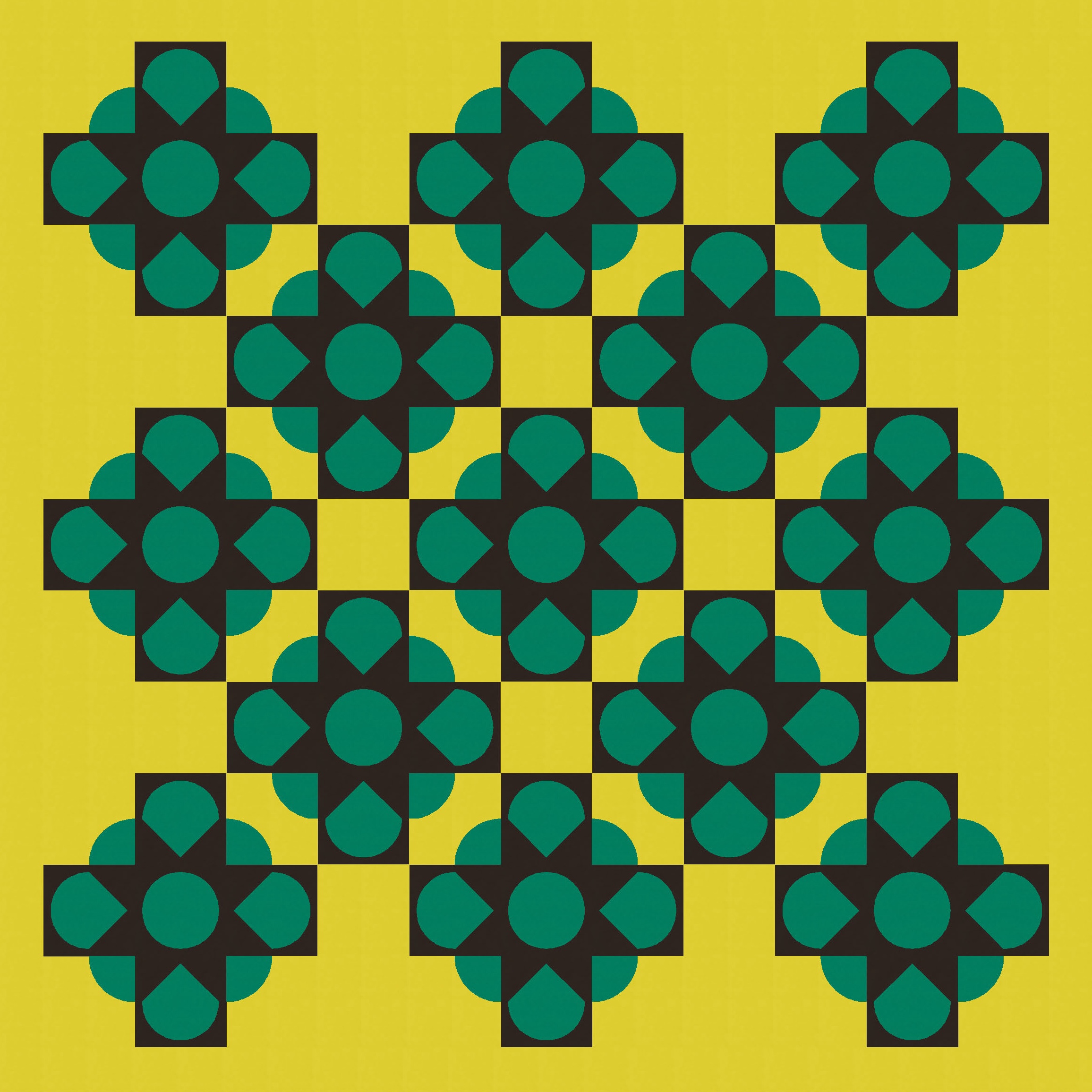 Then it was just a matter of playing around with colour to add and subtract. I’ve used a three-colour palette here to show a bunch (haha see what I did there?) of versions that differ only by colour placement. (Imagine that all parts of the blocks are still there, but when something’s coloured in that green-yellow background colour, it effectively disappears.)