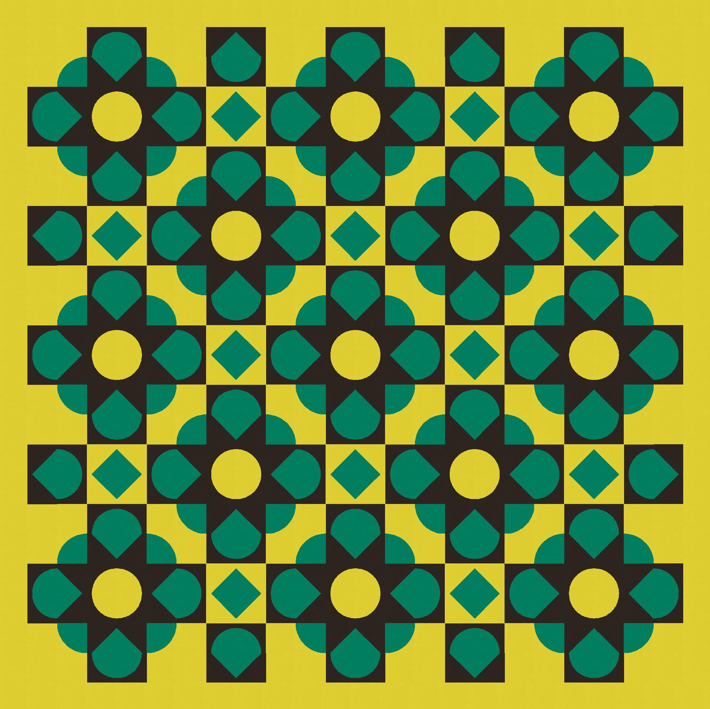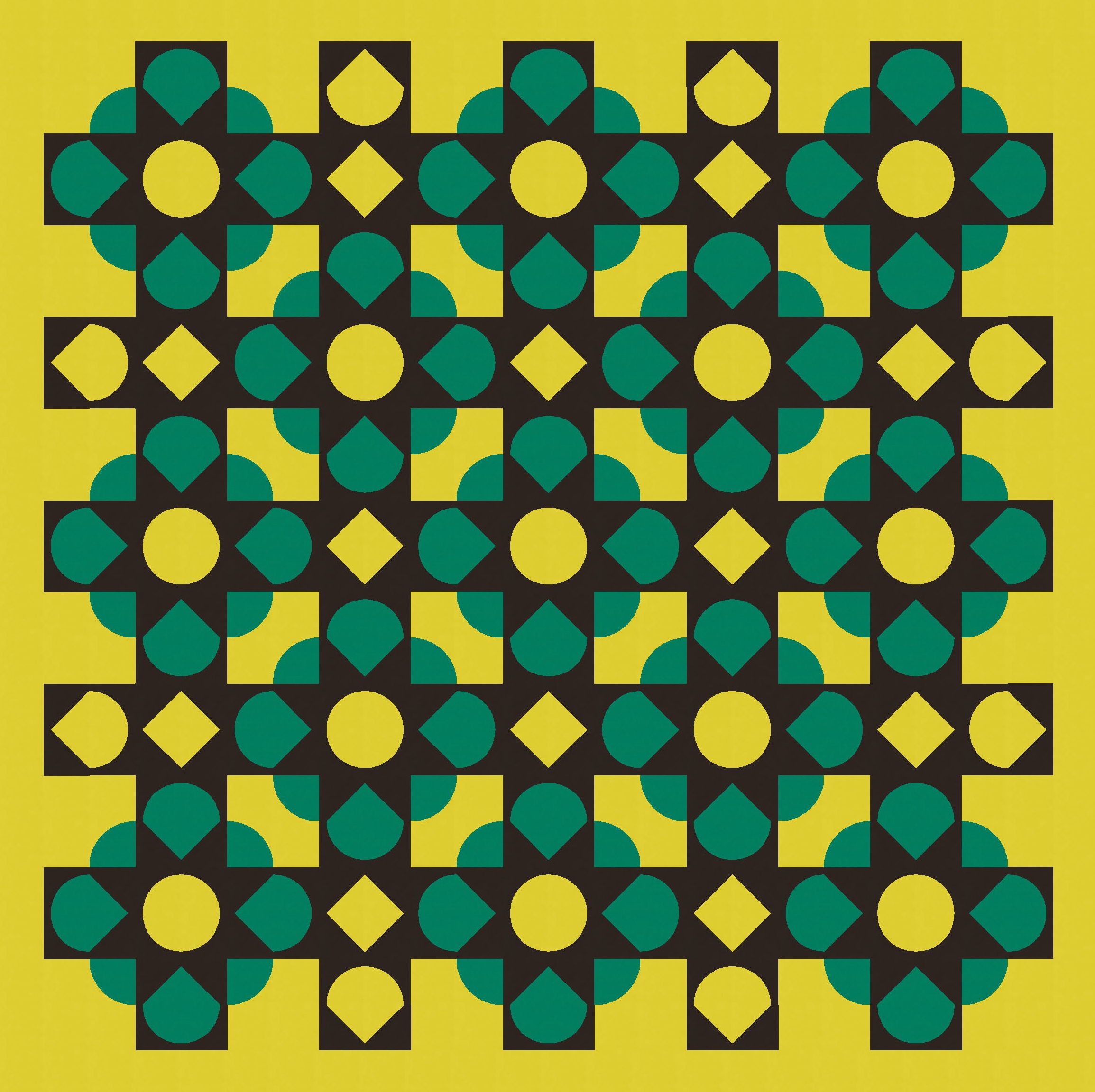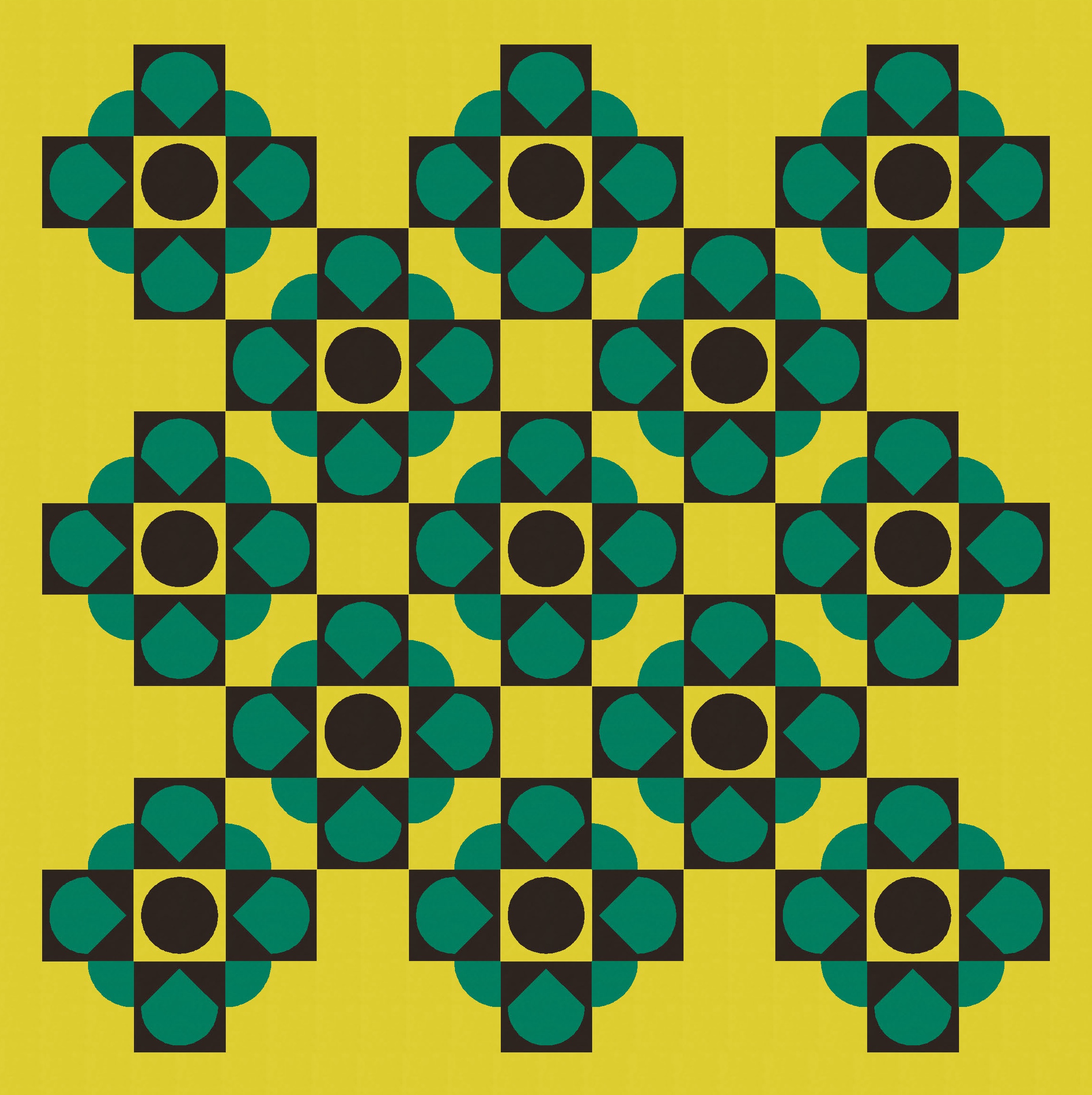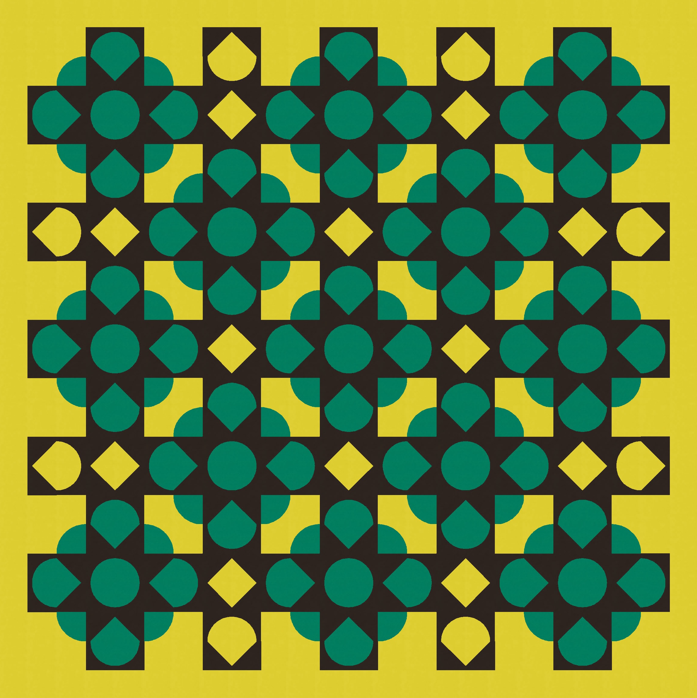 Then it was just a matter of playing around with colour to add and subtract. I’ve used a three-colour palette here to show a bunch (haha see what I did there?) of versions that differ only by colour placement. (Imagine that all parts of the blocks are still there, but when something’s coloured in that green-yellow background colour, it effectively disappears.)