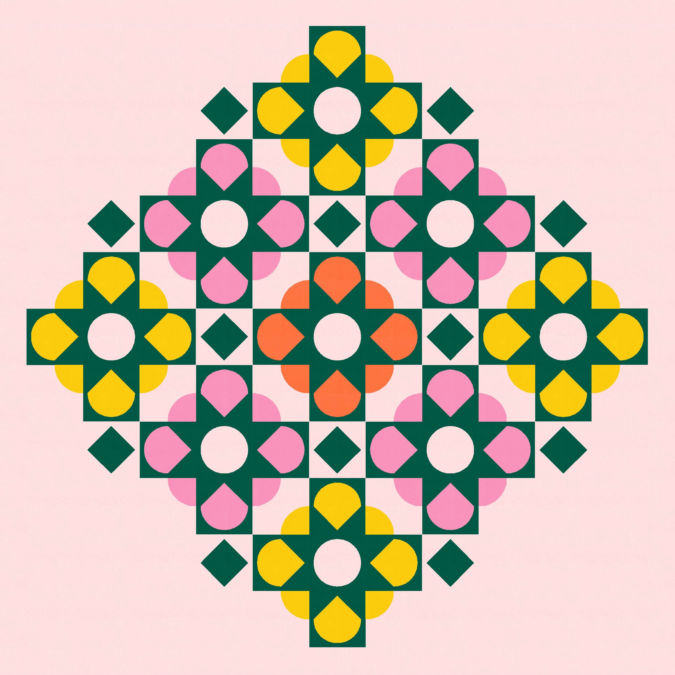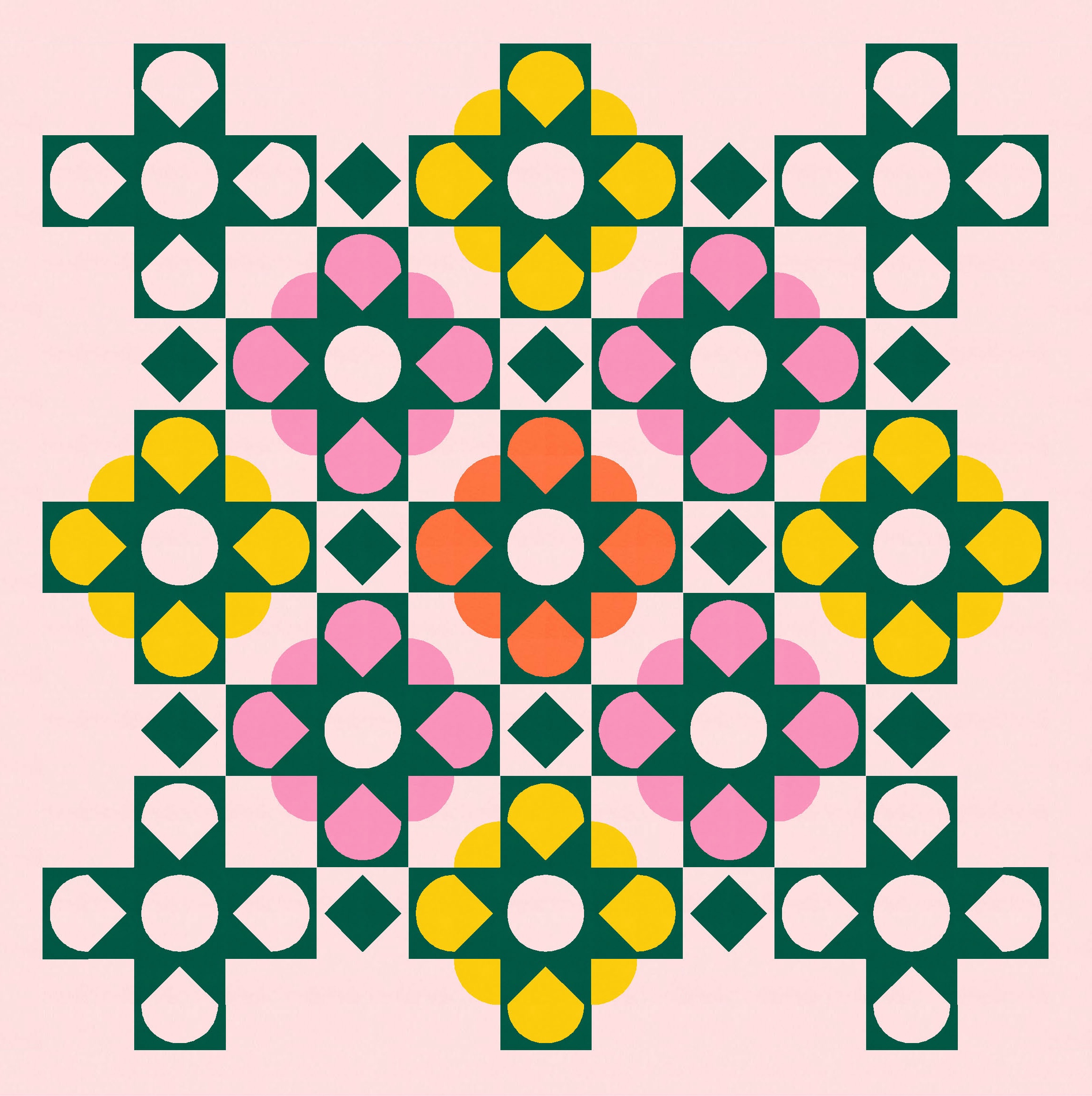 If I revert back to the theme of last week’s version (which featured a lattice laid over squircles), you can get a better idea of how the sketches are related. Where there were squircles last week, I coloured in the half-circles at the top, bottom and sides to create these fat blooms.