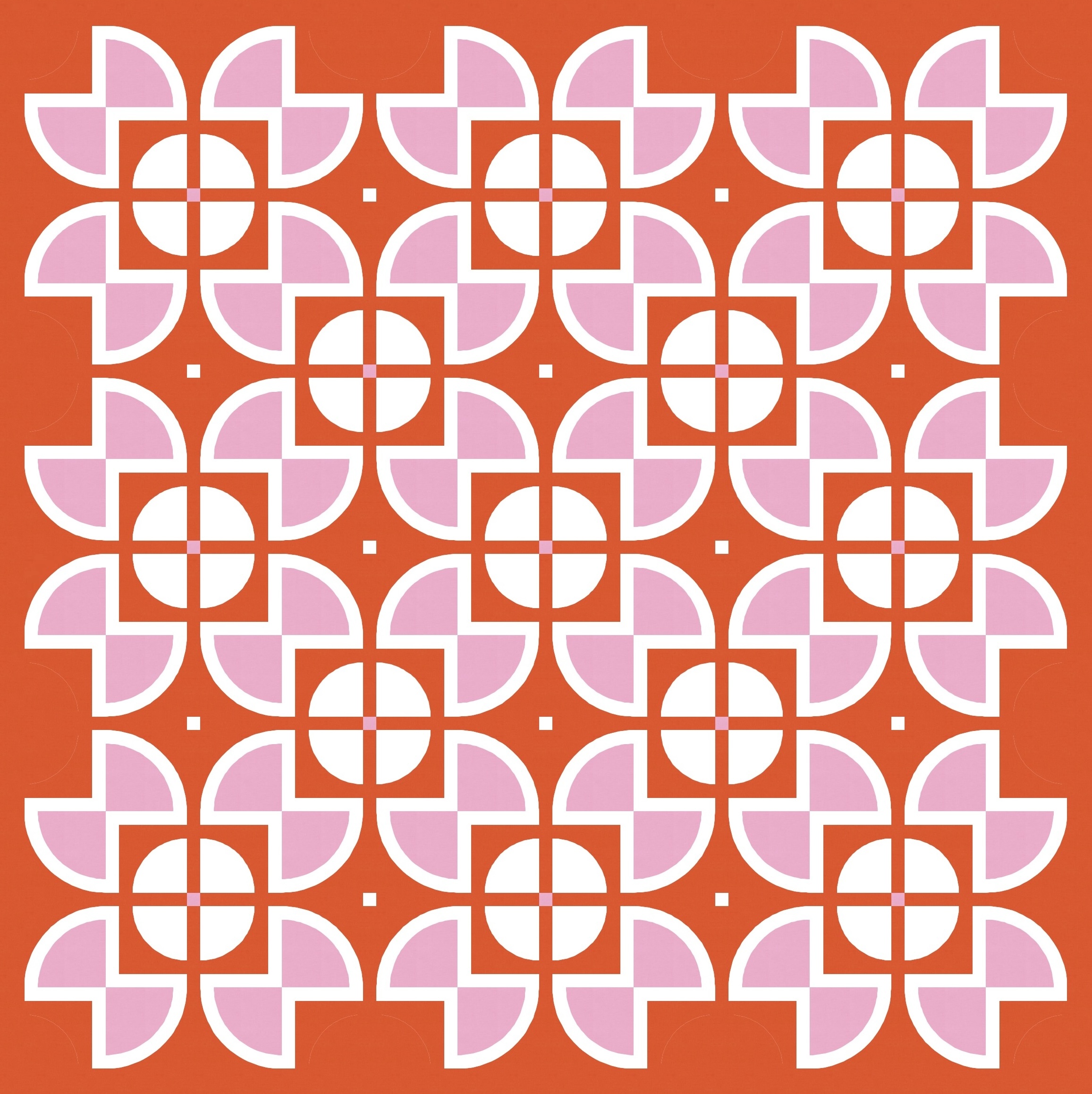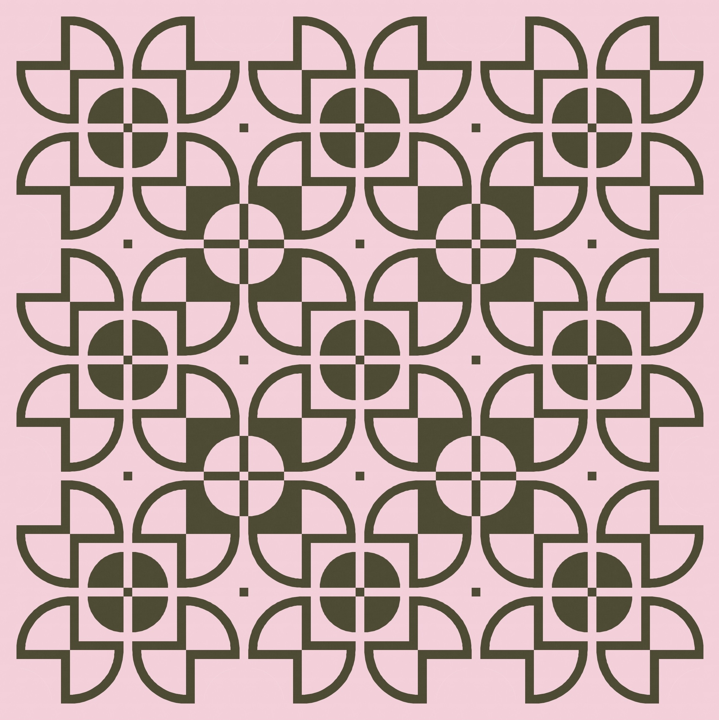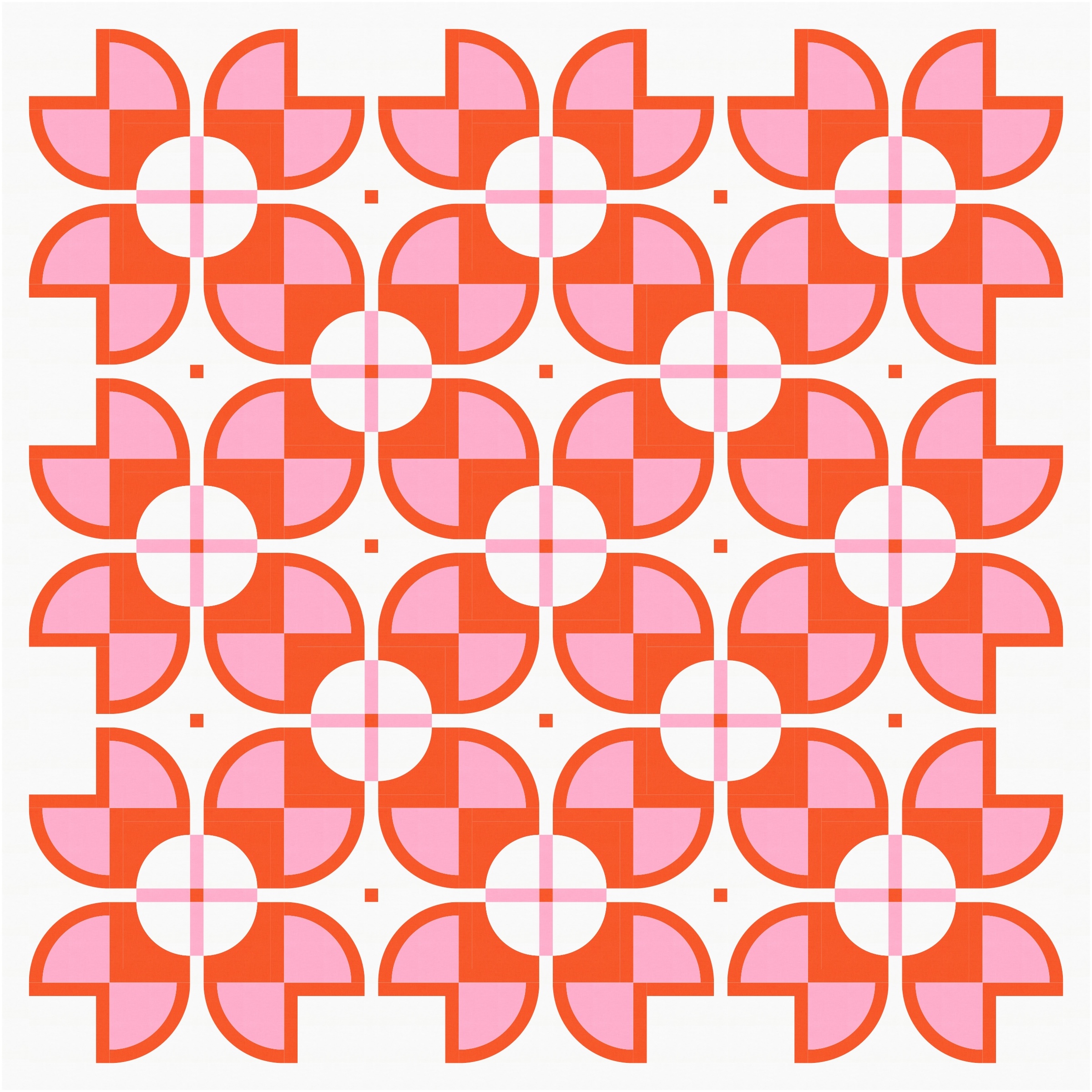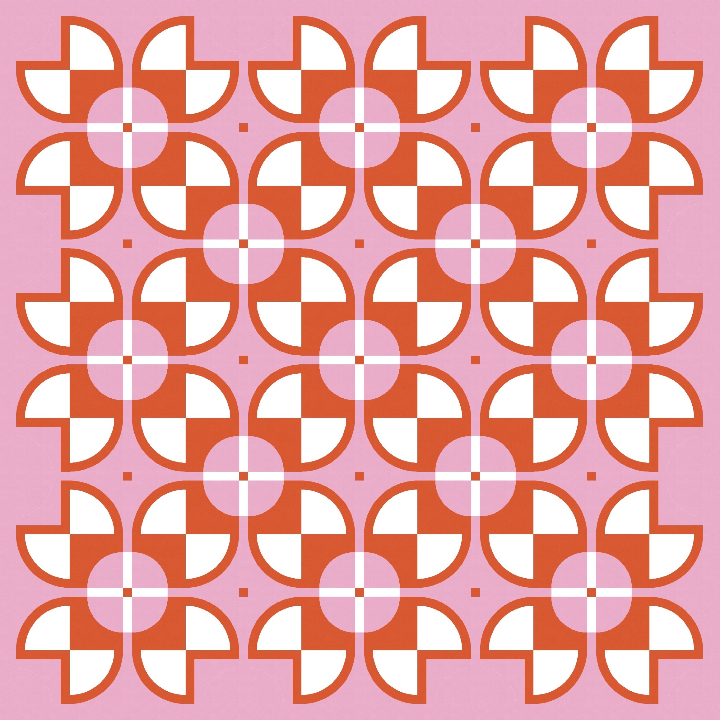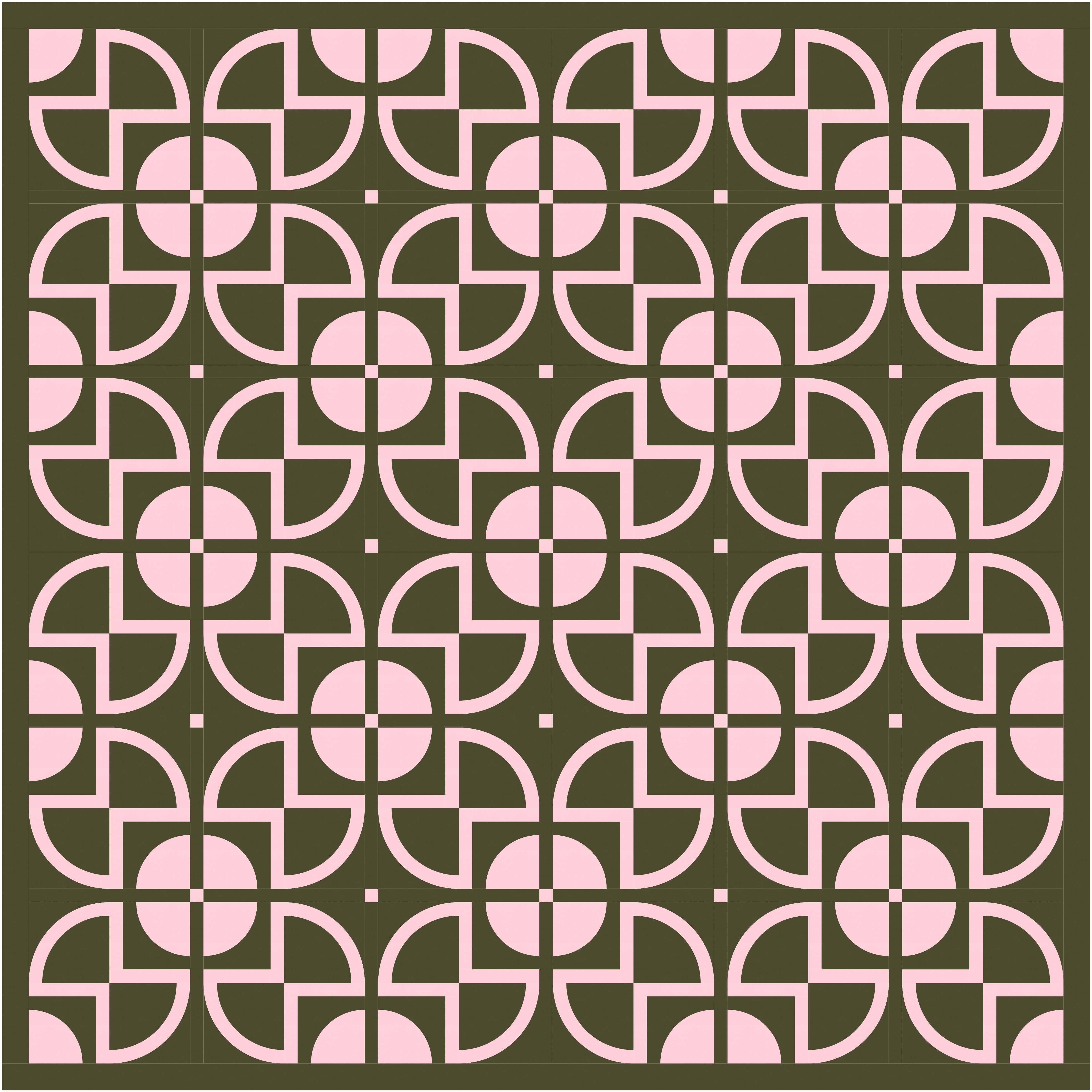 There aren’t that many discrete shapes to play with, but even so, there are lots of colouring options. Previously I left the centre square of the sawtooth star shapes ’empty’ (i.e. coloured using the background colour), with the inner circle in another colour. But here I’ve coloured in that square and left the inner circle ’empty’. Somehow that emphasises the larger squircle shapes that draw your eye around and around this design. I love this version!