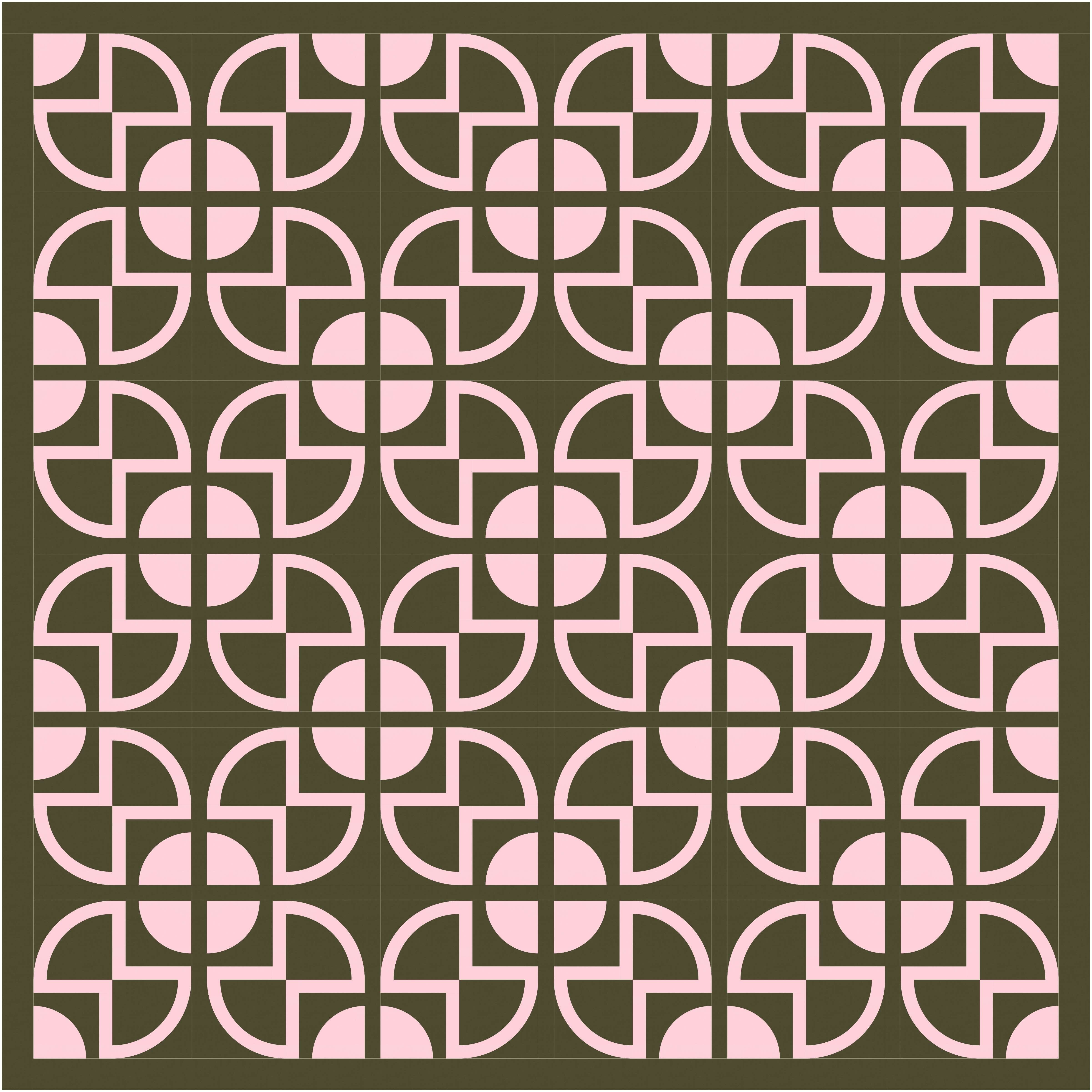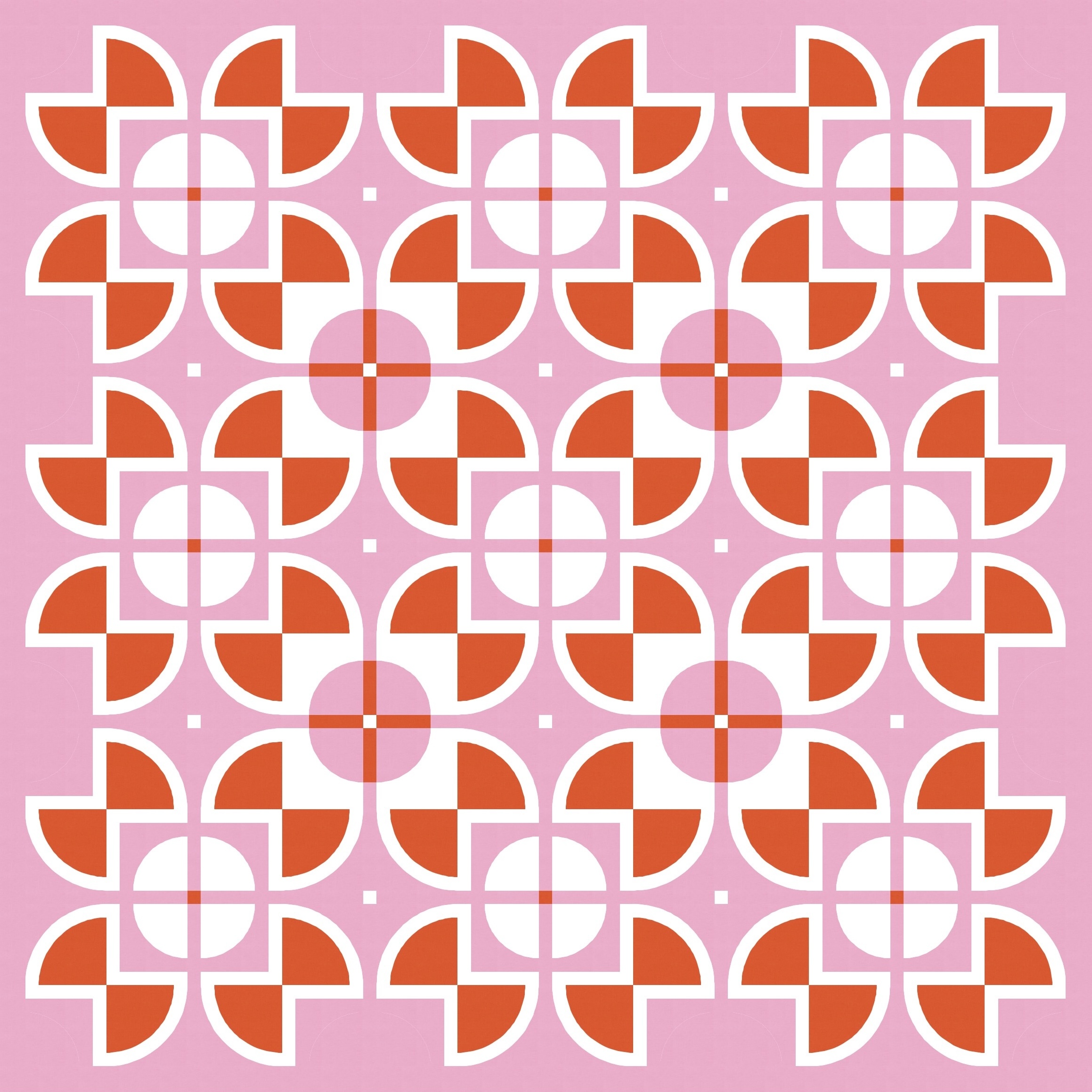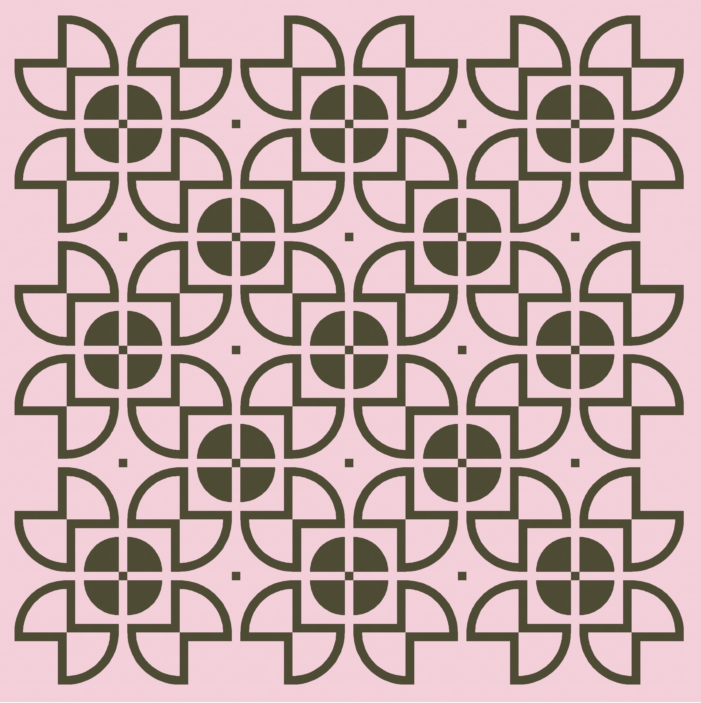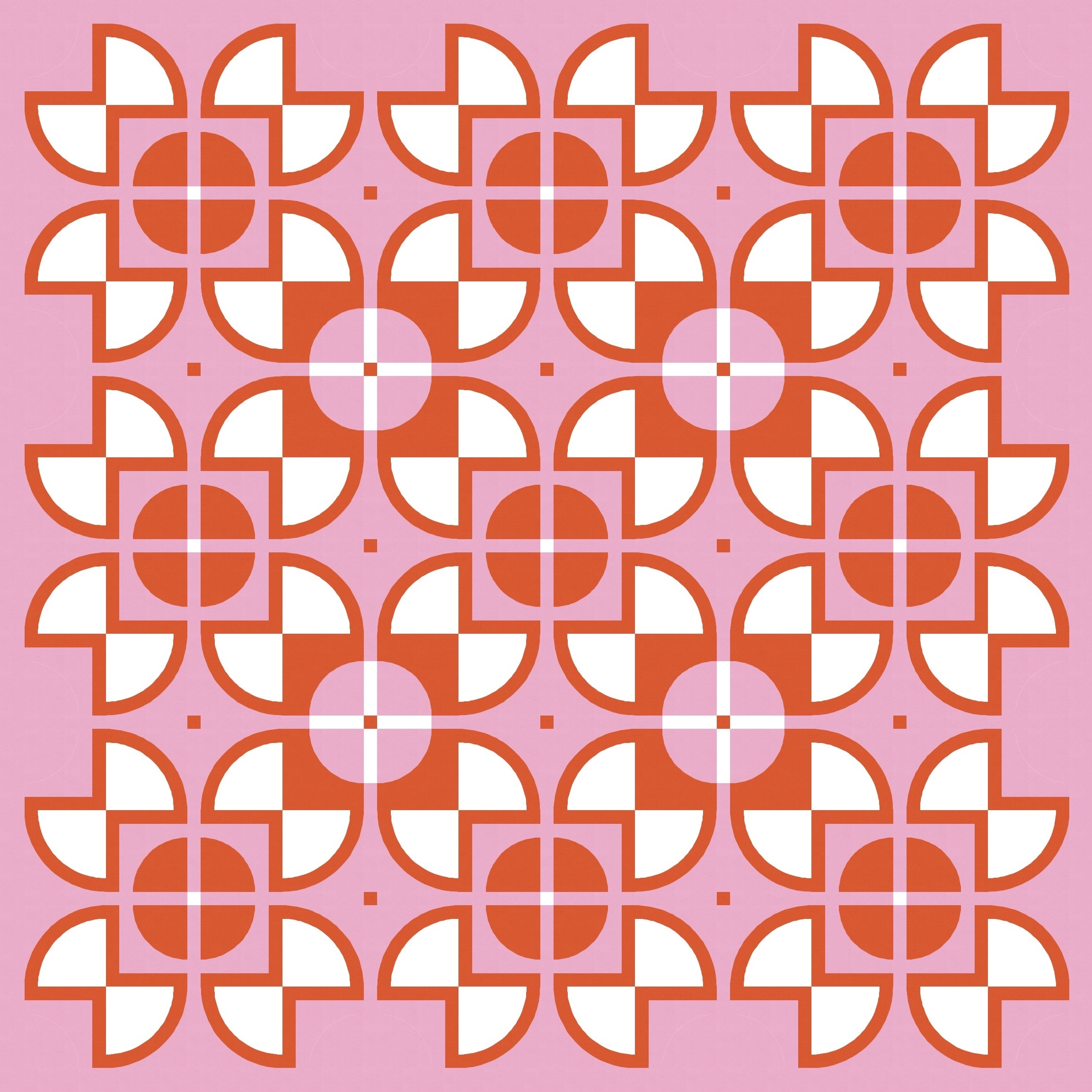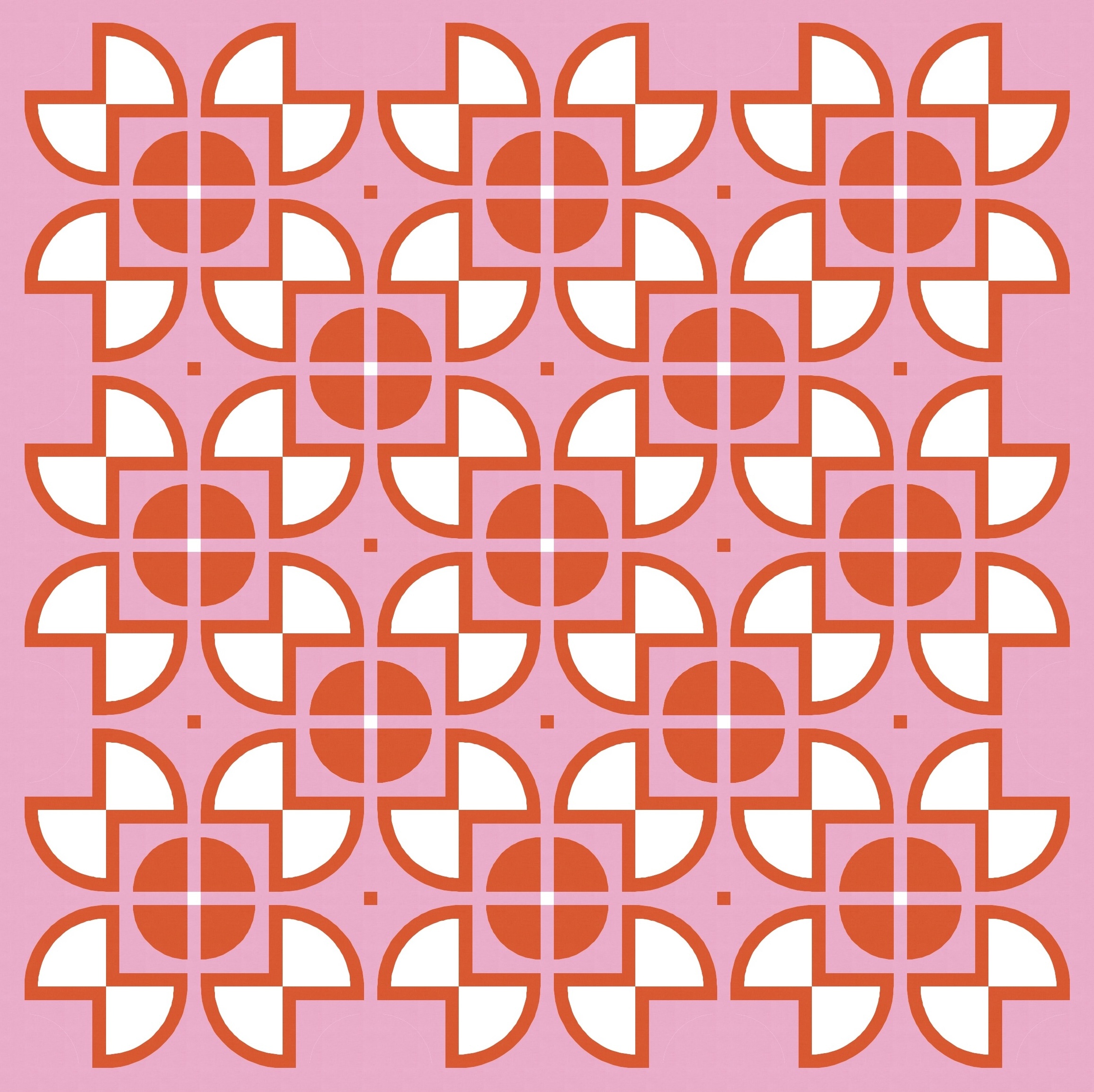 There aren’t that many discrete shapes to play with, but even so, there are lots of colouring options. Previously I left the centre square of the sawtooth star shapes ’empty’ (i.e. coloured using the background colour), with the inner circle in another colour. But here I’ve coloured in that square and left the inner circle ’empty’. Somehow that emphasises the larger squircle shapes that draw your eye around and around this design. I love this version!