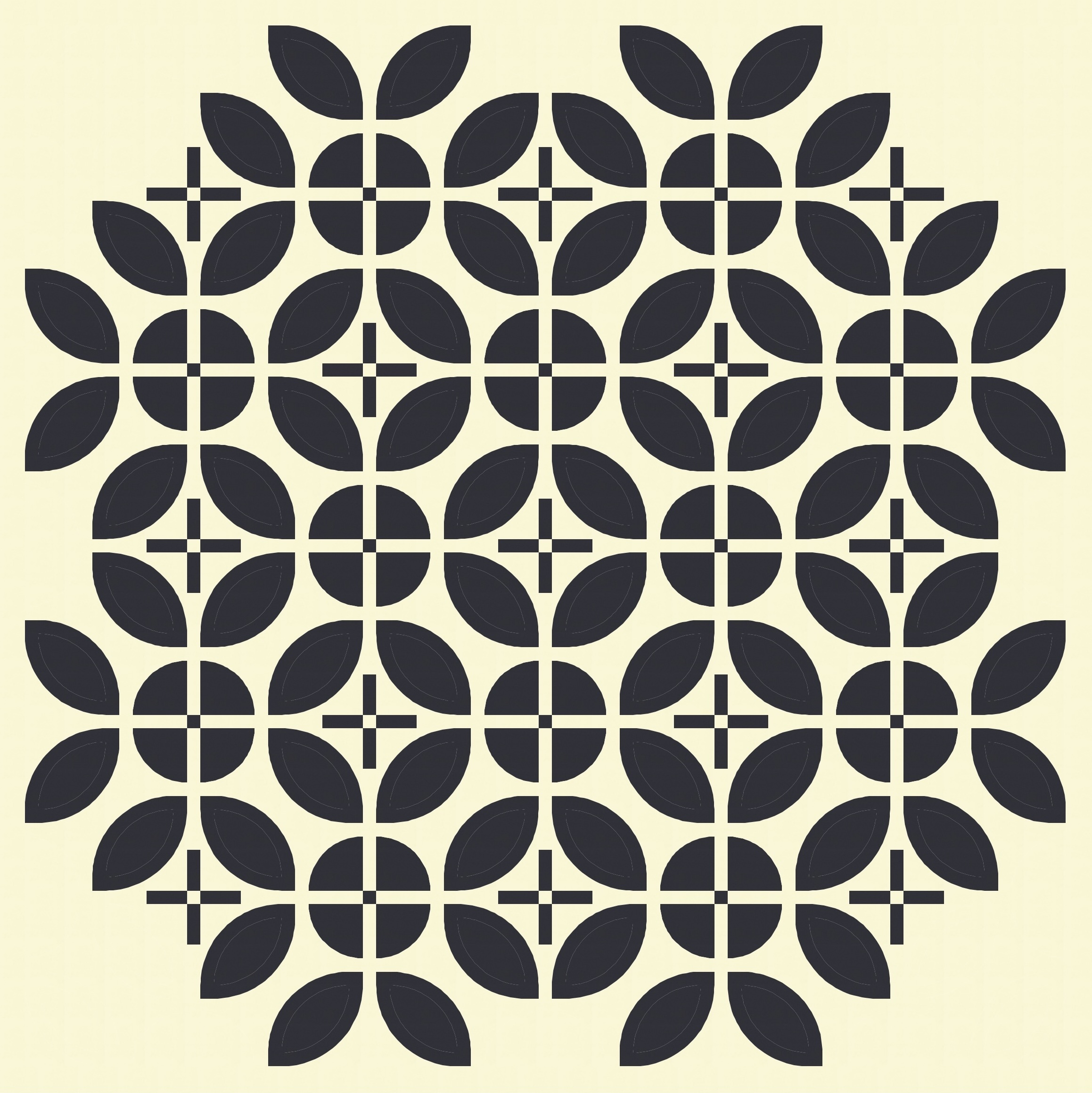 This week’s sketches have a ‘Scandi’ feel, and there are other designs out there that combine orange peels with quarter-circles. These sketches are also reminiscent of a double wedding ring design, where full circles overlap to create bordered orange-peel shapes (see examples of Victoria Findlay Wolfe’s double wedding ring quilts). But the addition of sashing here makes a difference, I think.