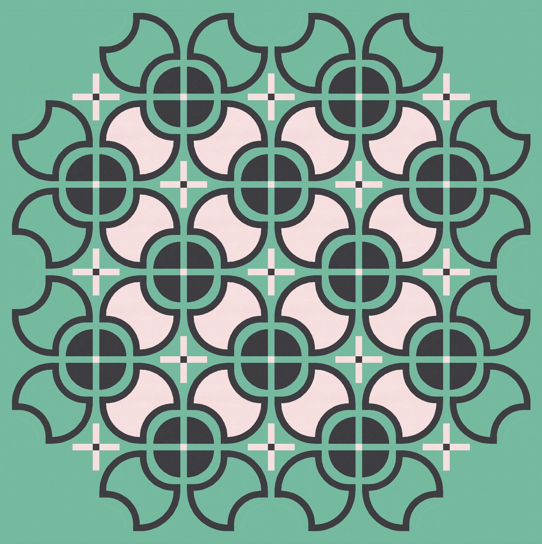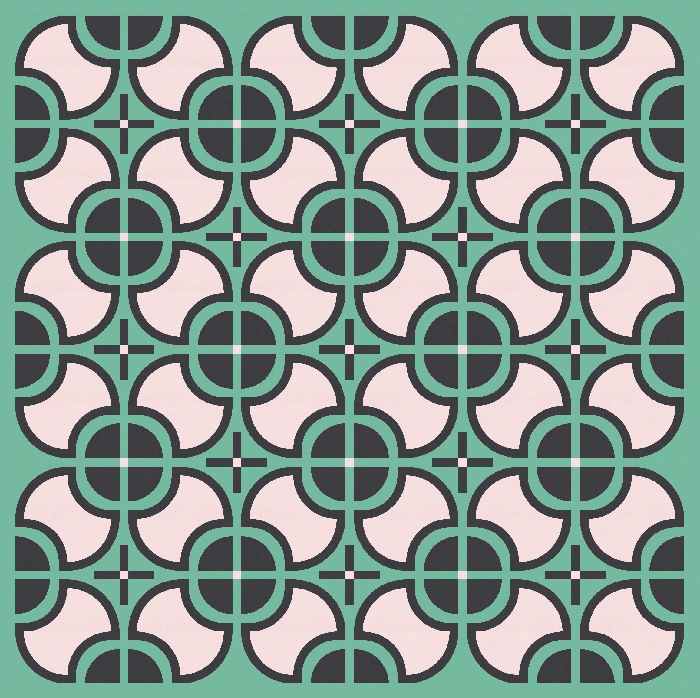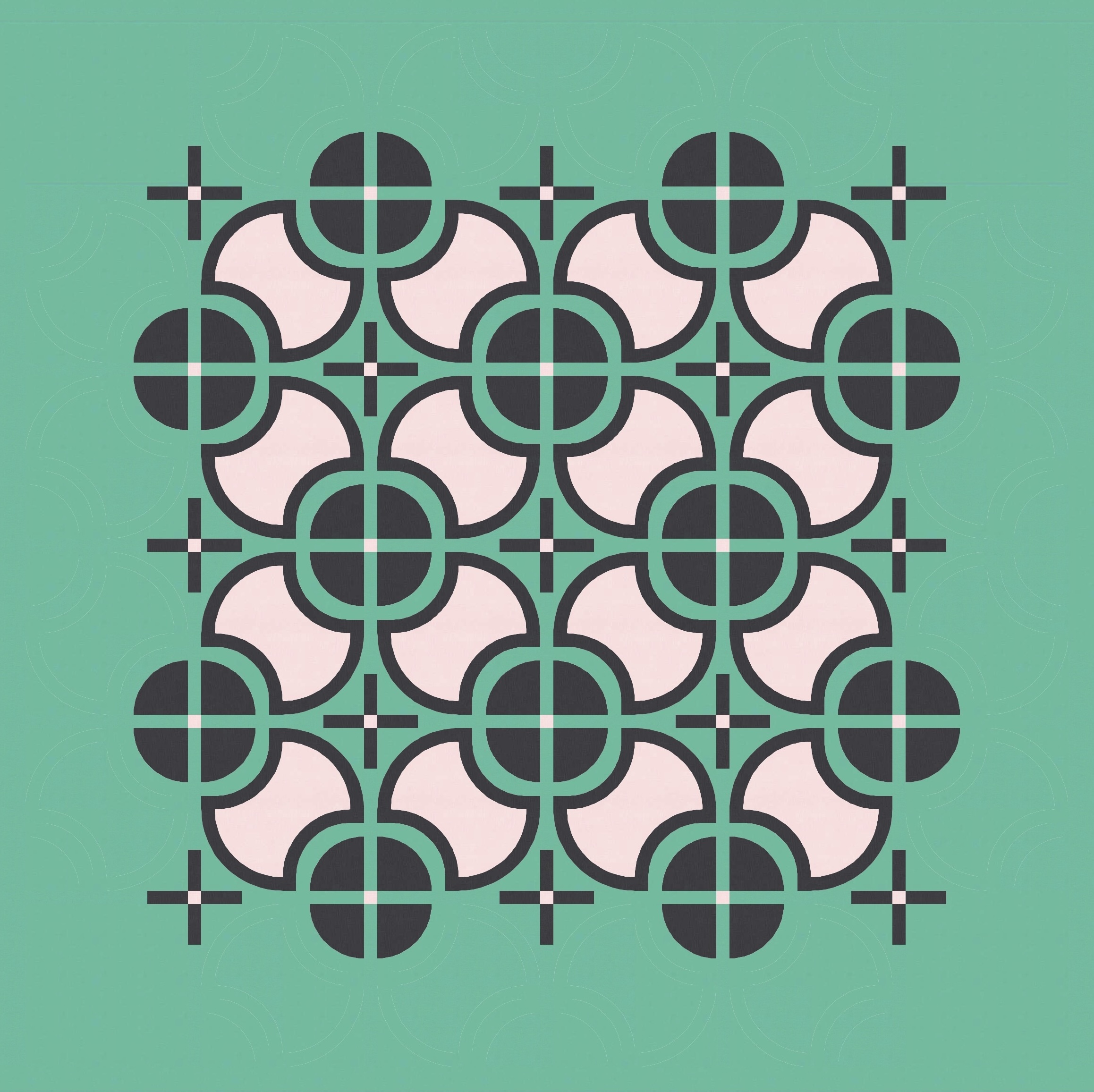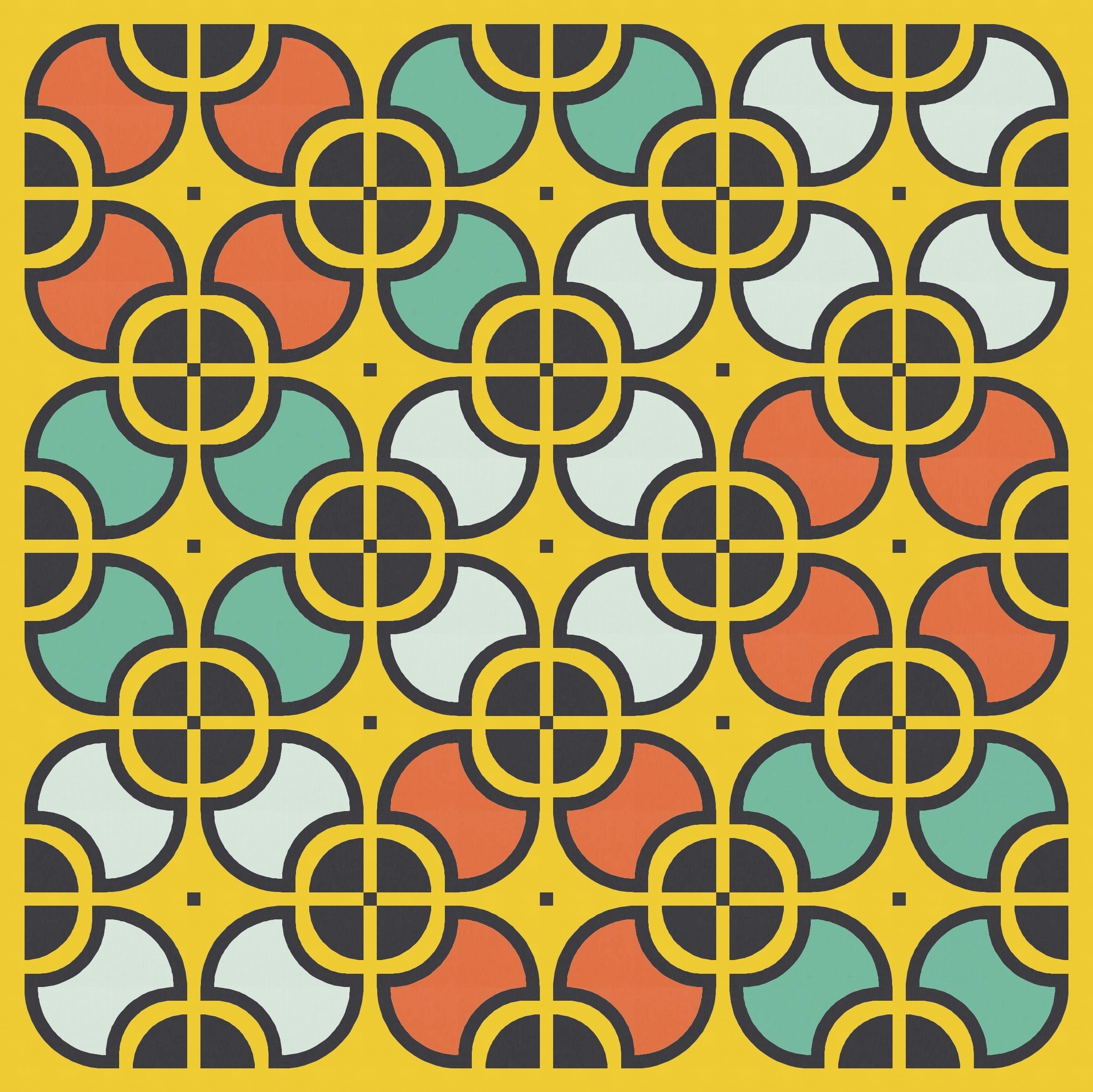 I’ve used a three-colour palette here, and picked three discrete areas for colouring: the background; the border of the apple core and the quarter circles; and the inside of the apple core. That’s really four areas, so I could’ve chosen a four-colour palette. Or coloured the quarter-circles within each block differently, which would require at least a five-colour palette.