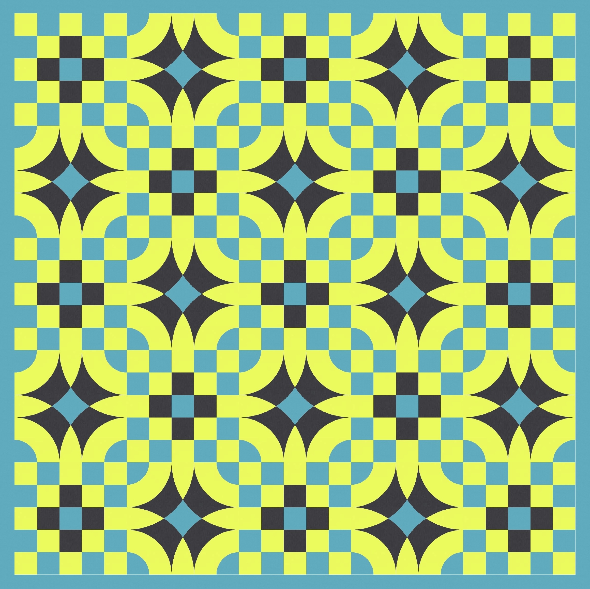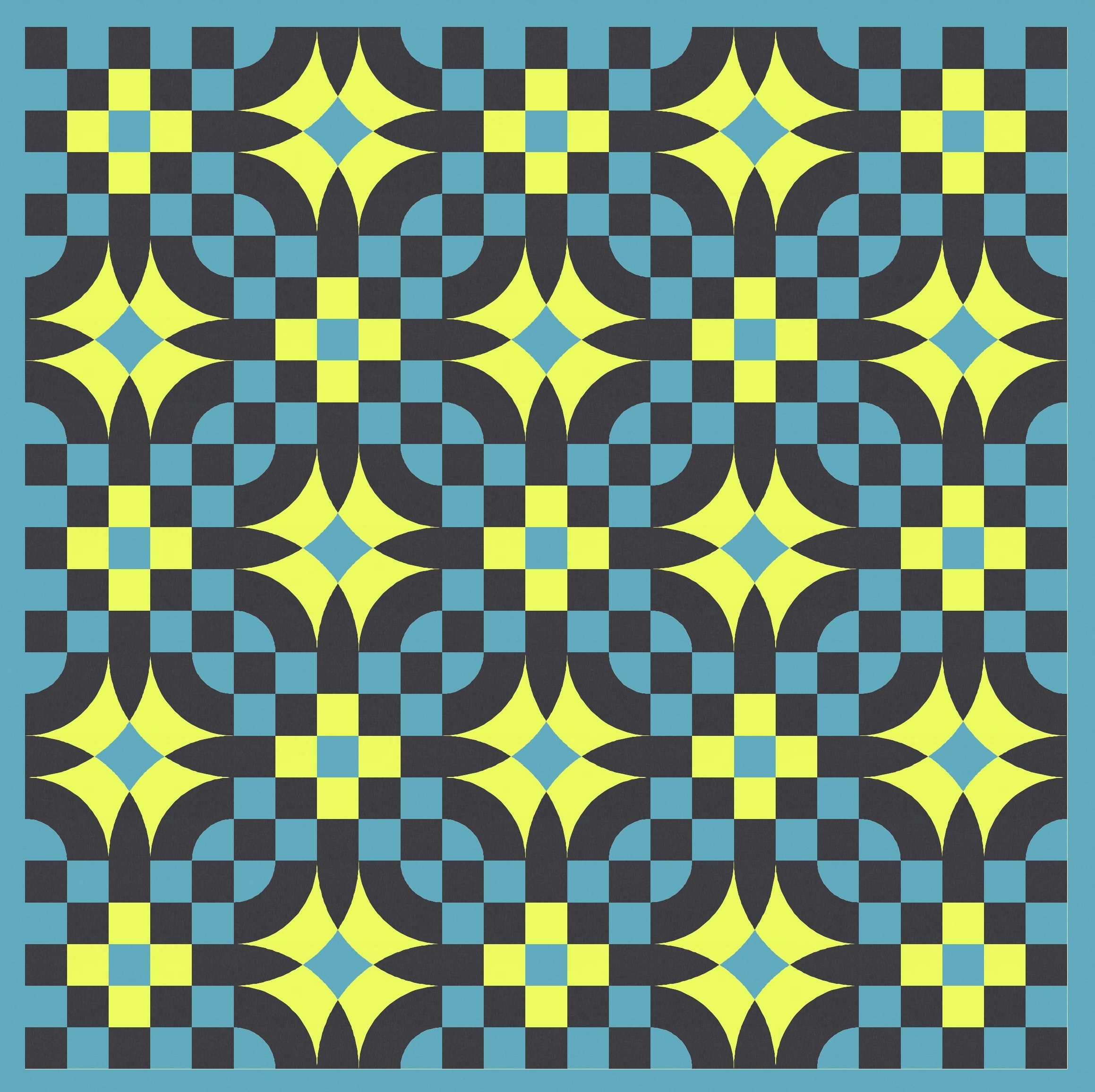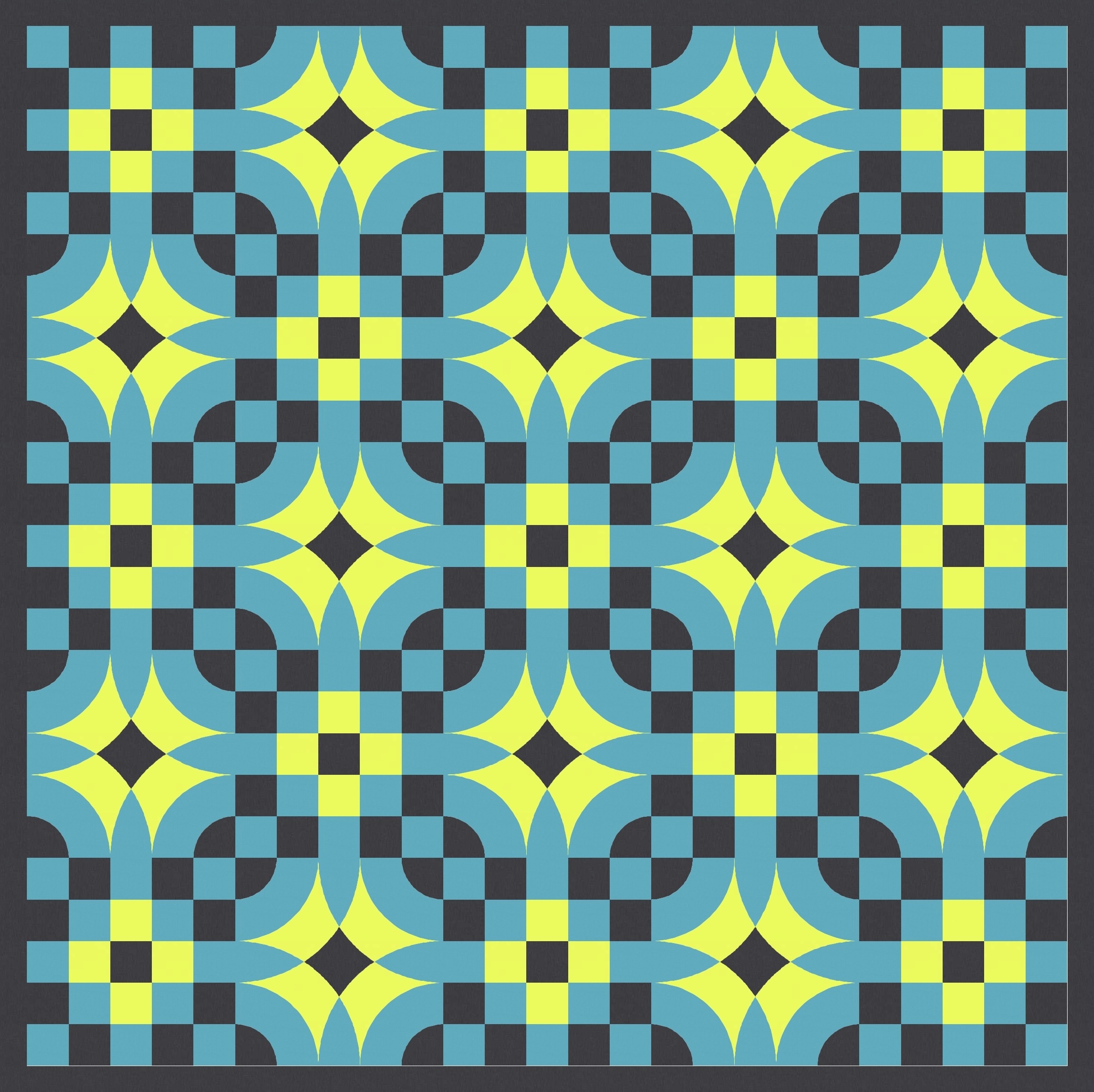 This two-colour version should make it pretty clear how the two different blocks are tiled. A bit like an Irish chain design, a bit unlike it too.