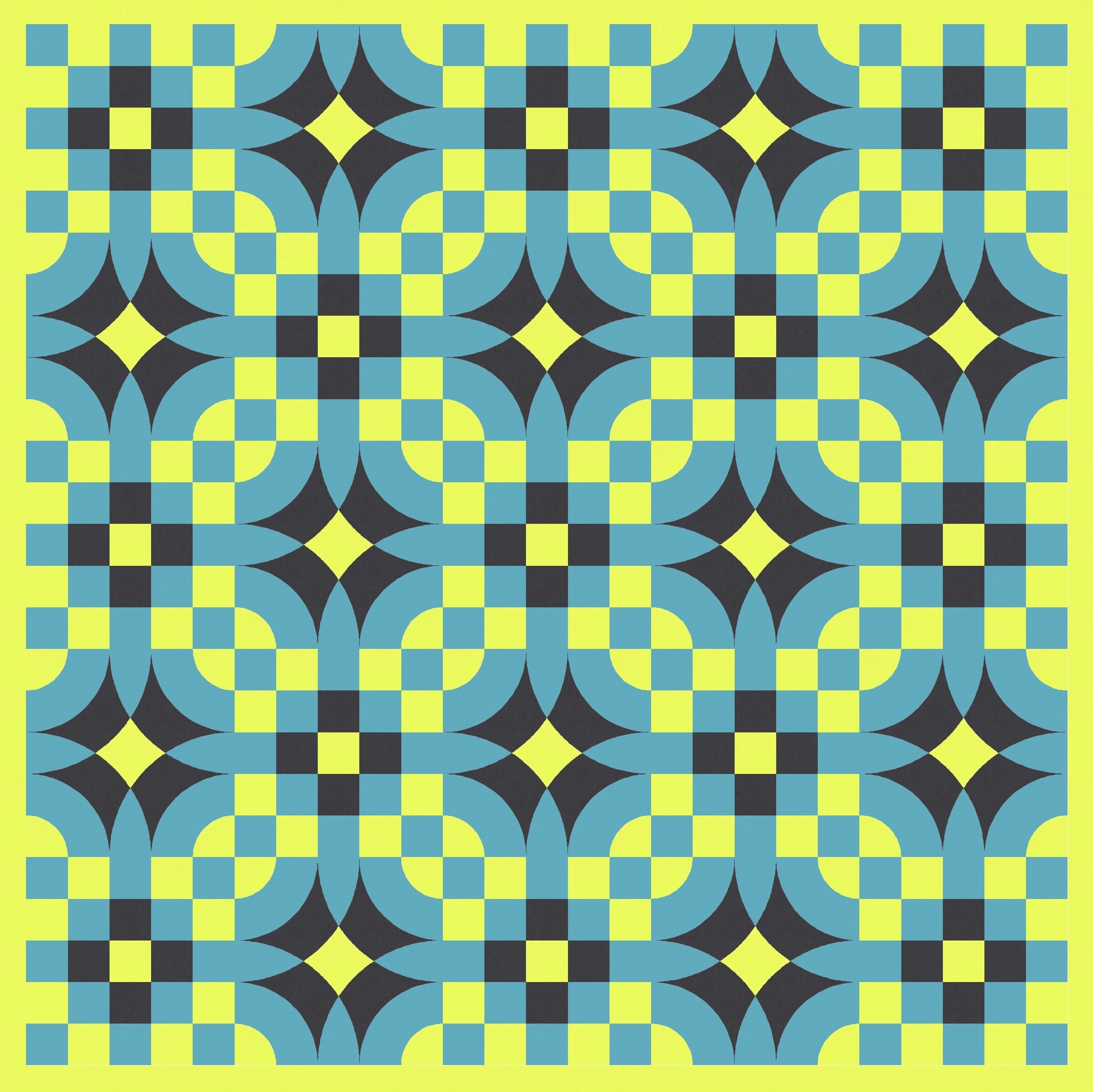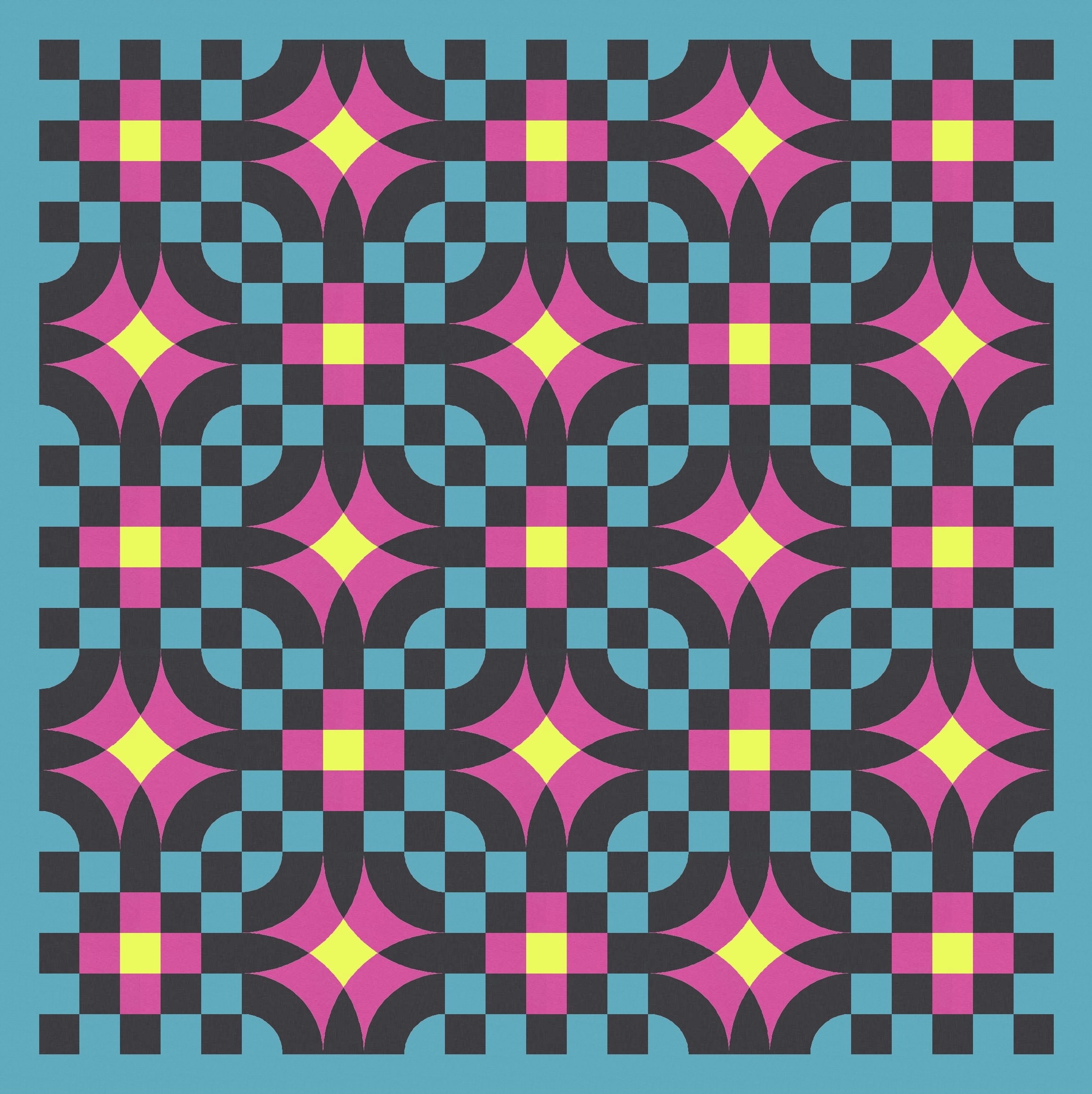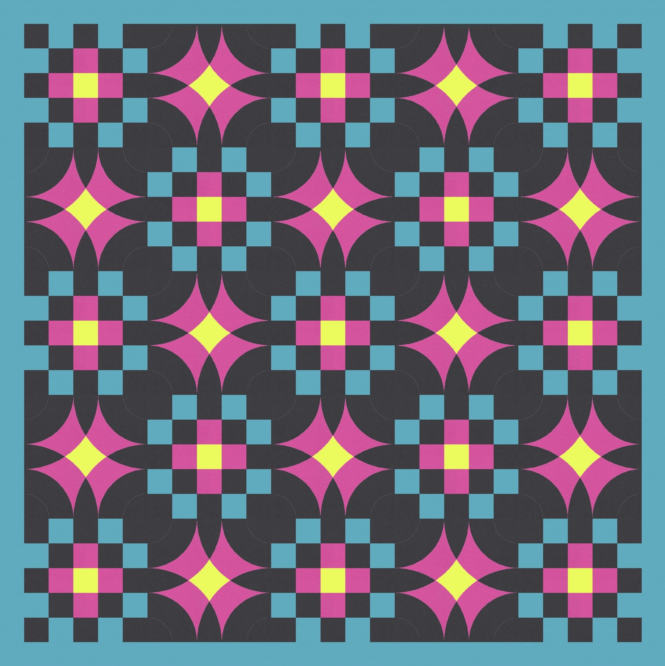 This two-colour version should make it pretty clear how the two different blocks are tiled. A bit like an Irish chain design, a bit unlike it too.