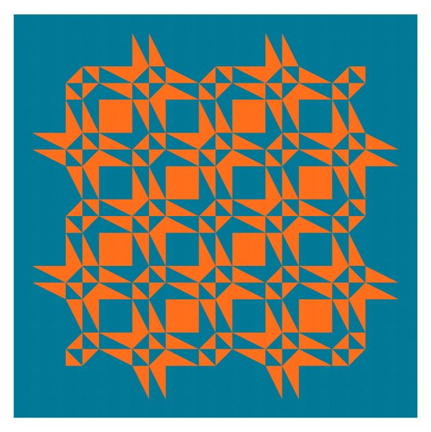 I feel like this last version also emphasises those diamonds created by the triangle-in-a-square units between adjacent blocks. I’ll play with those more next week!