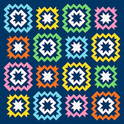 A bit of fun with sawtooth stars this week, surrounding them in layers of colour that end up looking like little explosions.