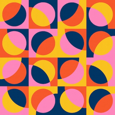 This week’s design makes me think of conversations – the large curvy shapes are like (double-sided) speech bubbles, and the connected circles are like ellipses signalling little pauses in speech.