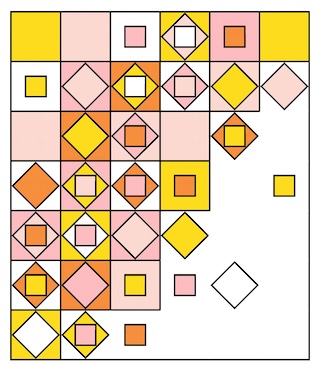 Including white in the 5-colour palette means that a few stars don’t have a background squircle. I like how that opens up the design a bit and adds some negative space for the eye to rest. (The sashing between the blocks helps with that too.)