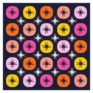 This week’s sketch is an iteration (of sorts) of Sunday sketch #369. Instead of 8-pointed stars, I’m using 5-pointed stars, and instead of a 2-colour palette, I’m using a 4-colour palette.
